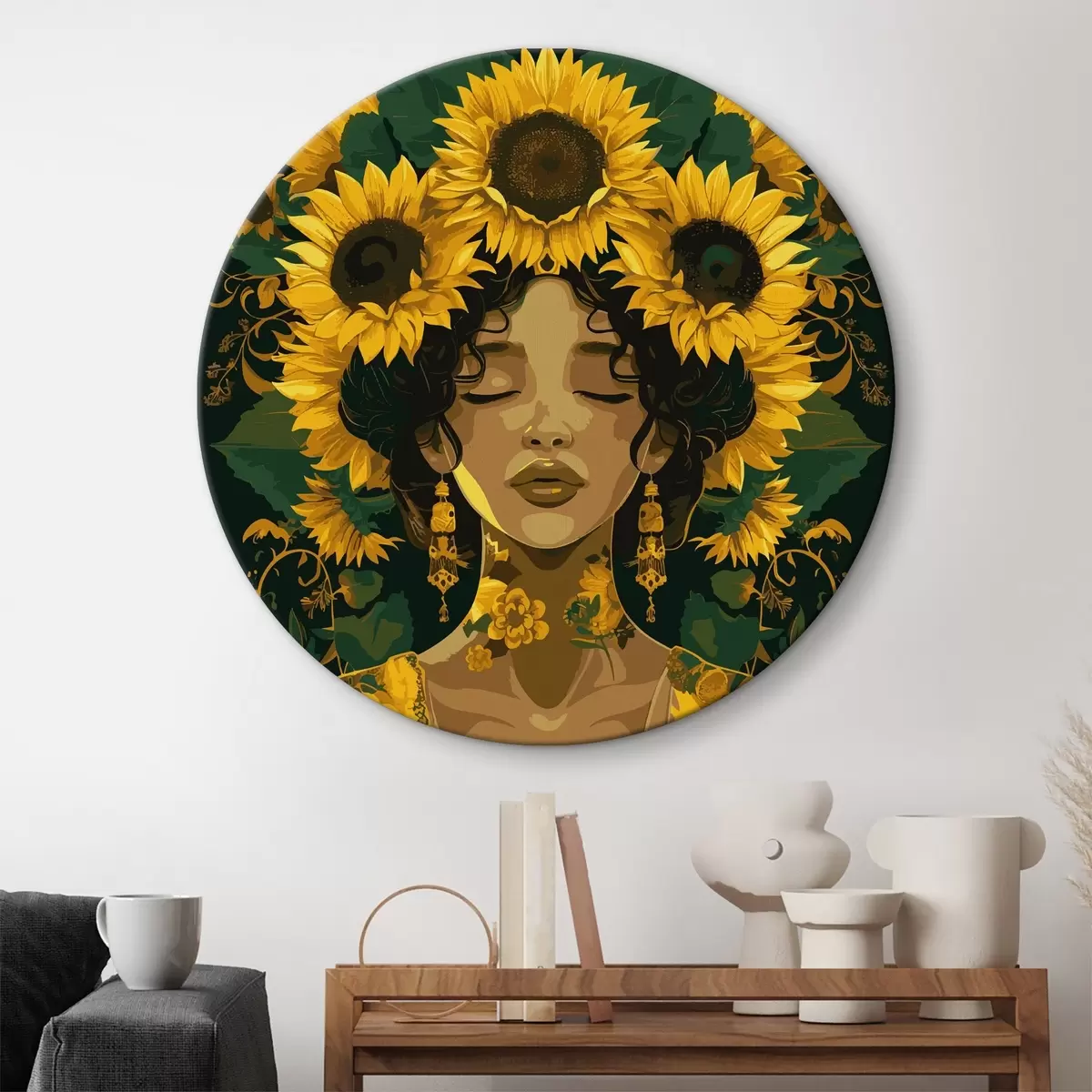 Nuotrauka Moteris su saulėgrąžomis plaukuose Nr r38263