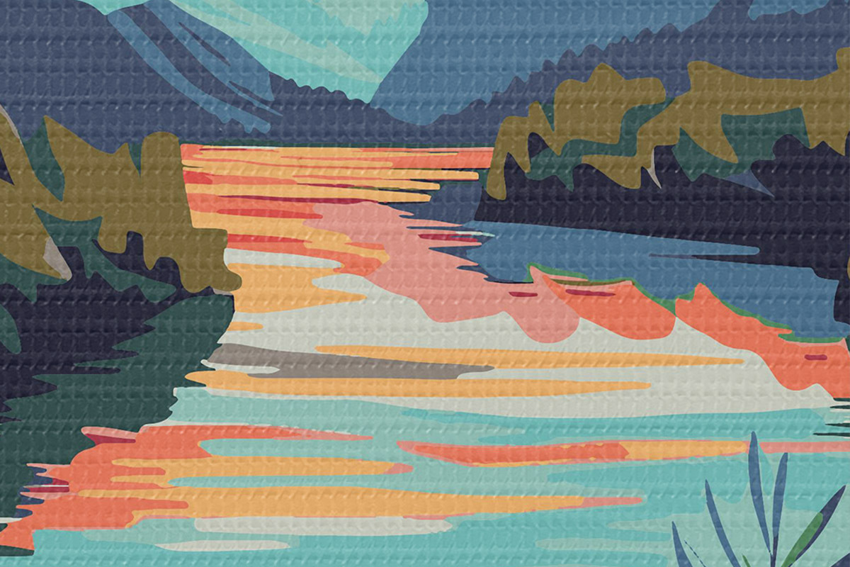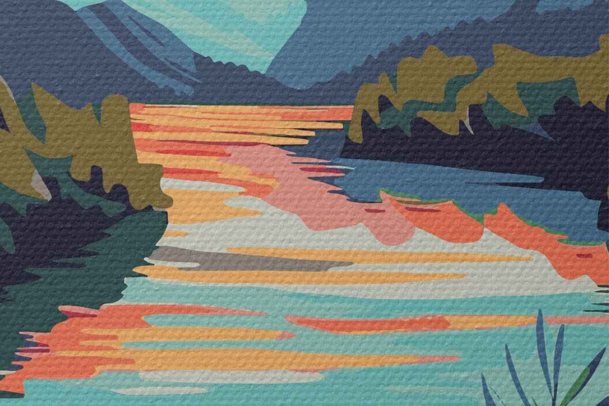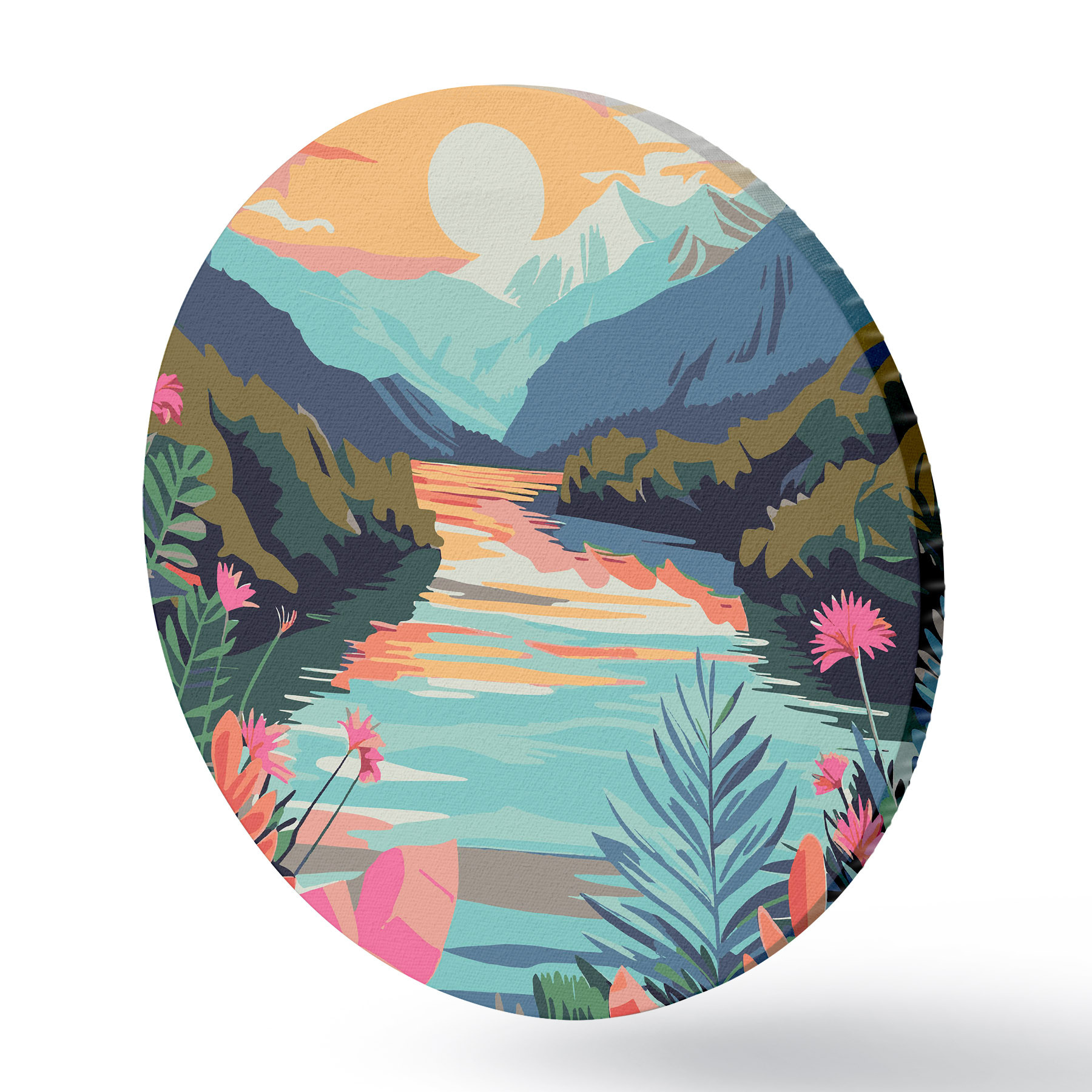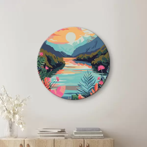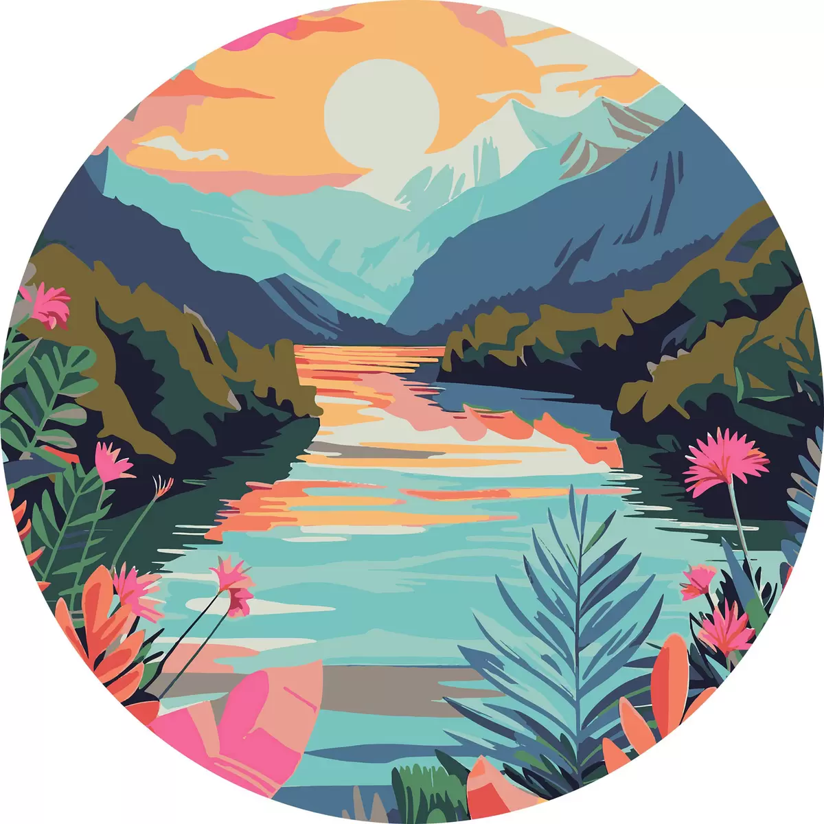 Nuotrauka Upė su gėlėmis ir kalnais fone Nr r38266