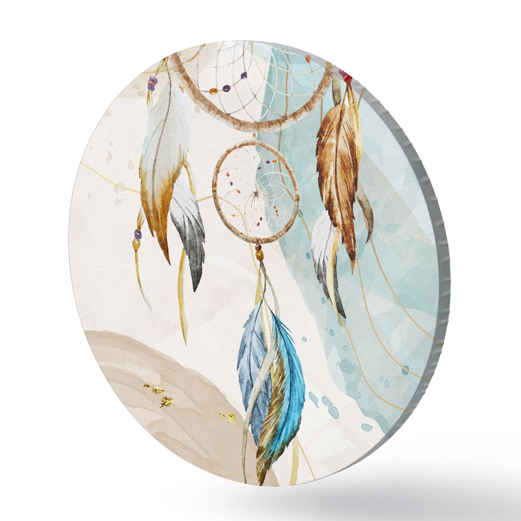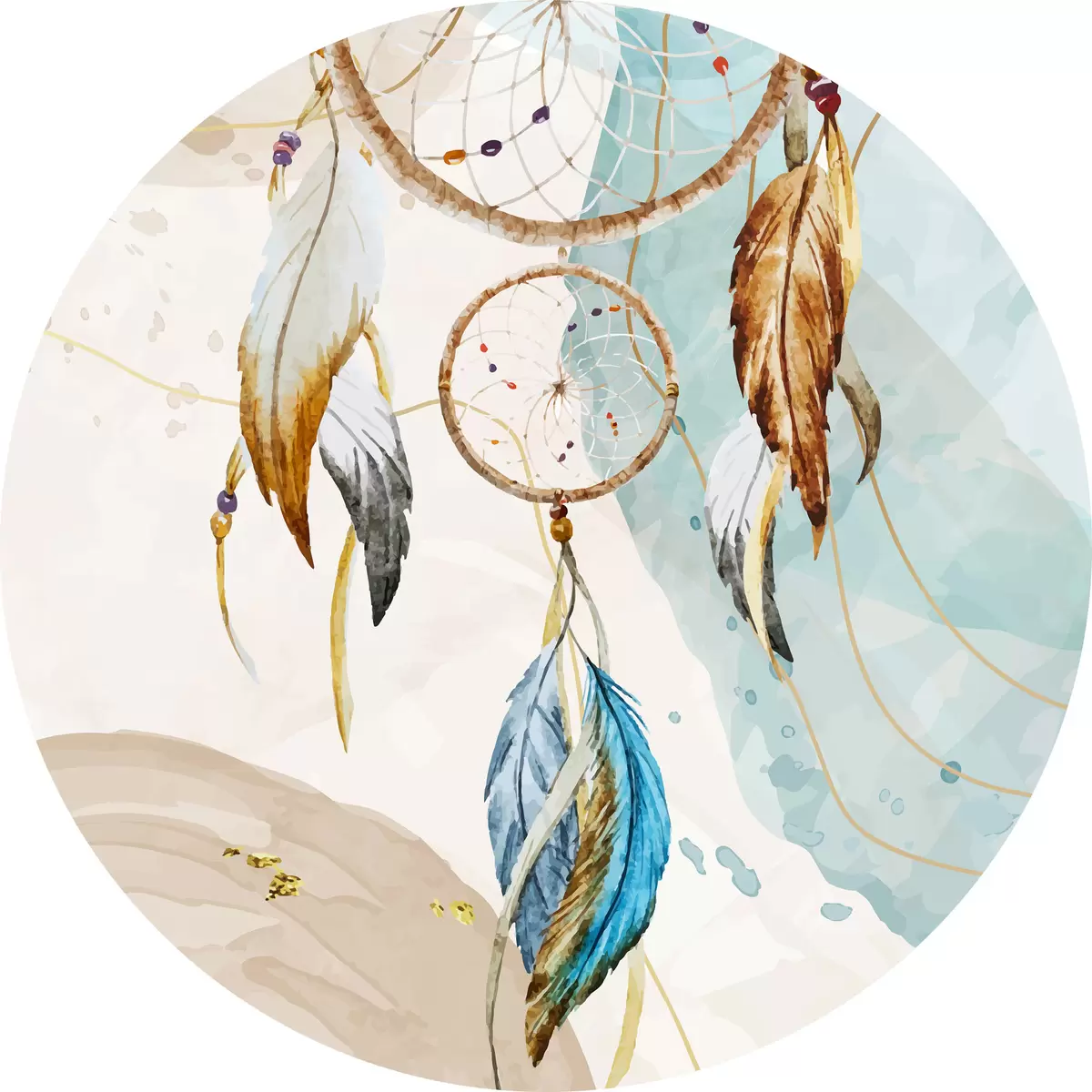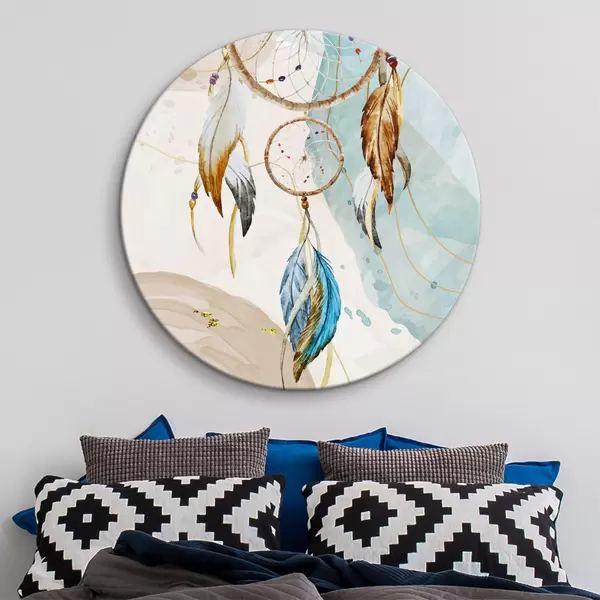 Apvalūs paveikslai akvarelė, sapnų gaudyklė, plunksnos, pastelė r38330