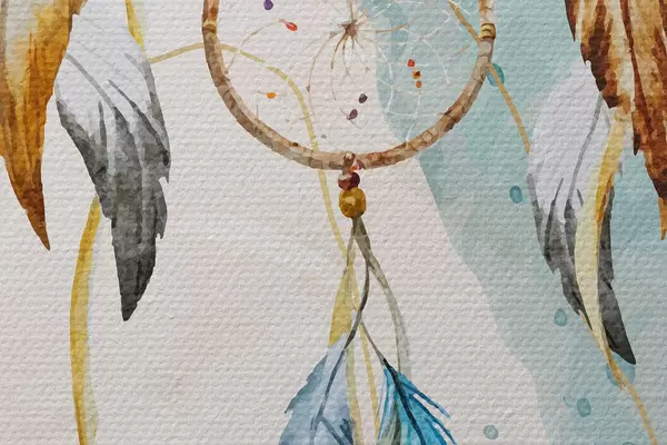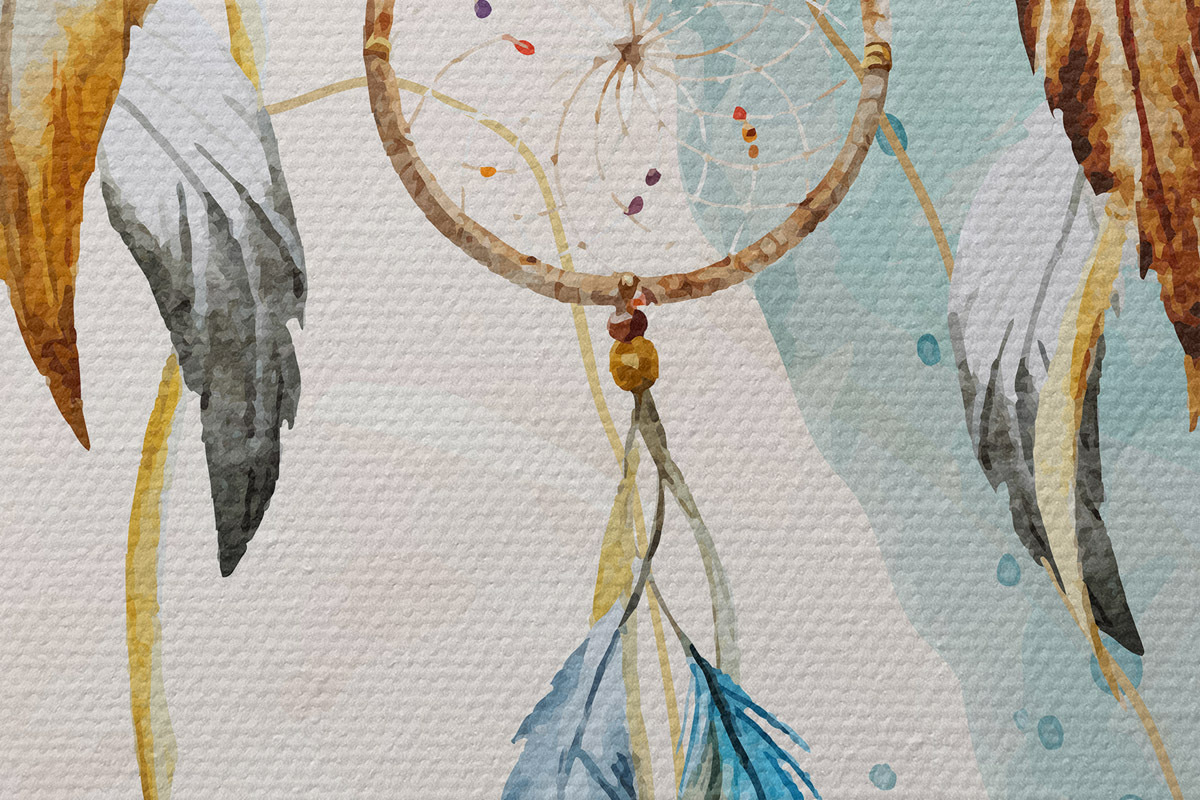 Nuotrauka akvarelė, sapnų gaudyklė, plunksnos, pastelė Nr r38330