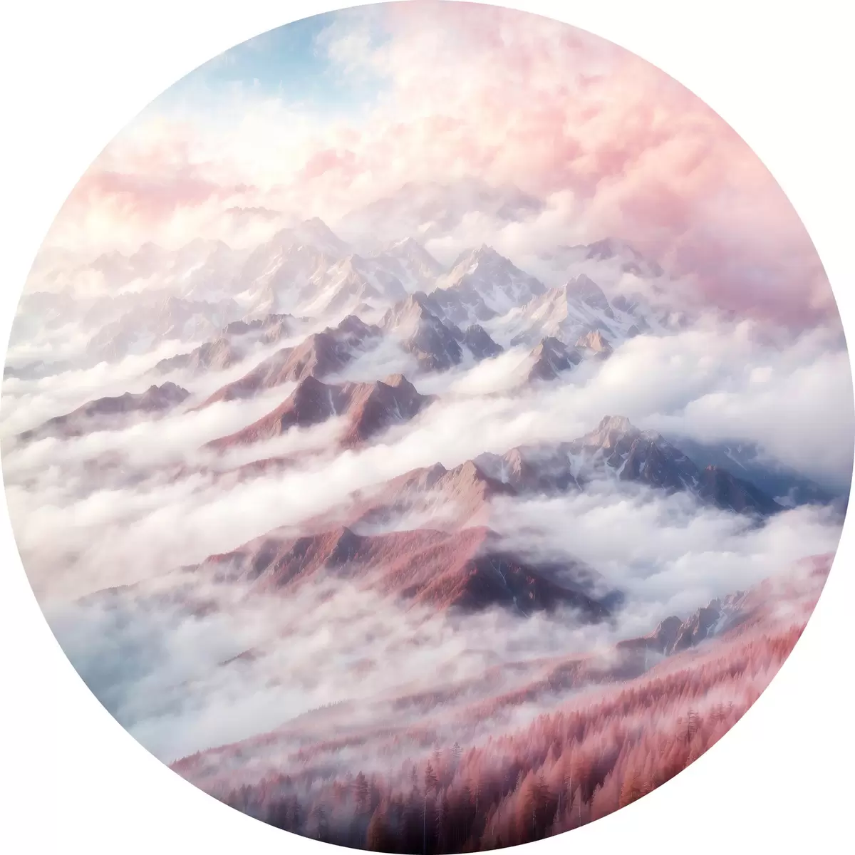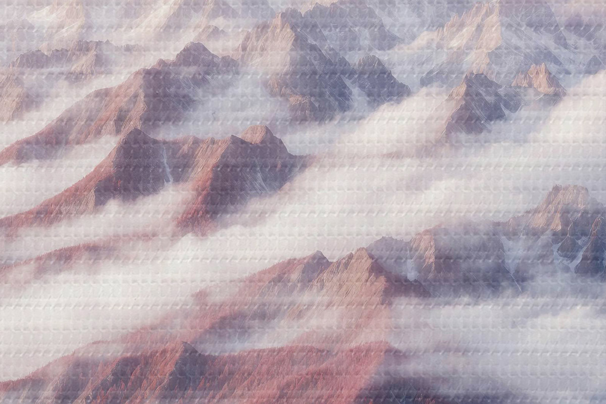 Nuotrauka Kalnų masyvas su debesimis ir medžiais Nr r38358