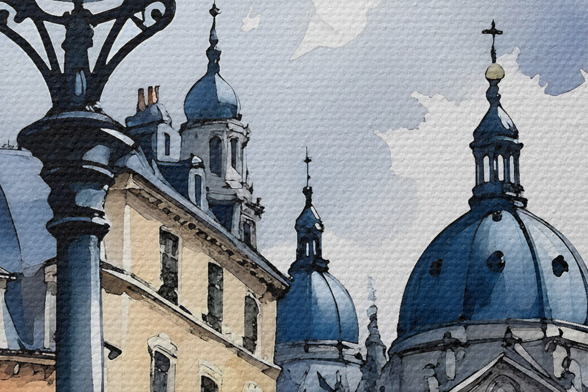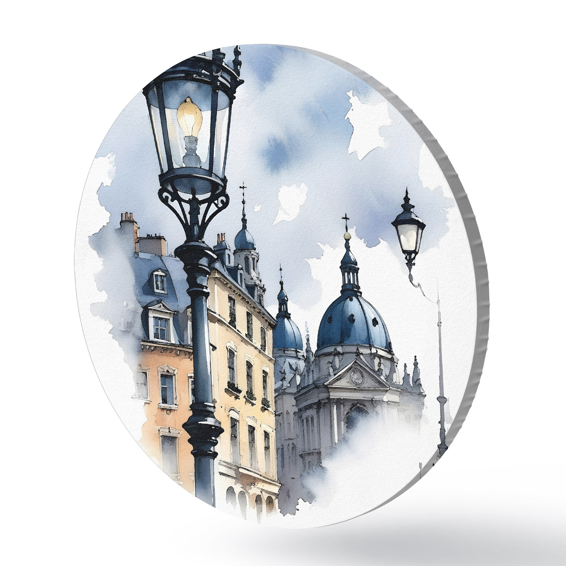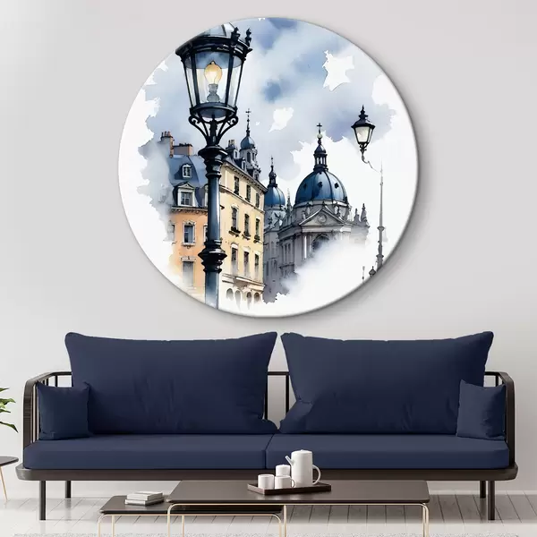 Nuotrauka Puošnus gatvės šviestuvas su kupolo formos pastatu debesuotą dieną Nr r38364