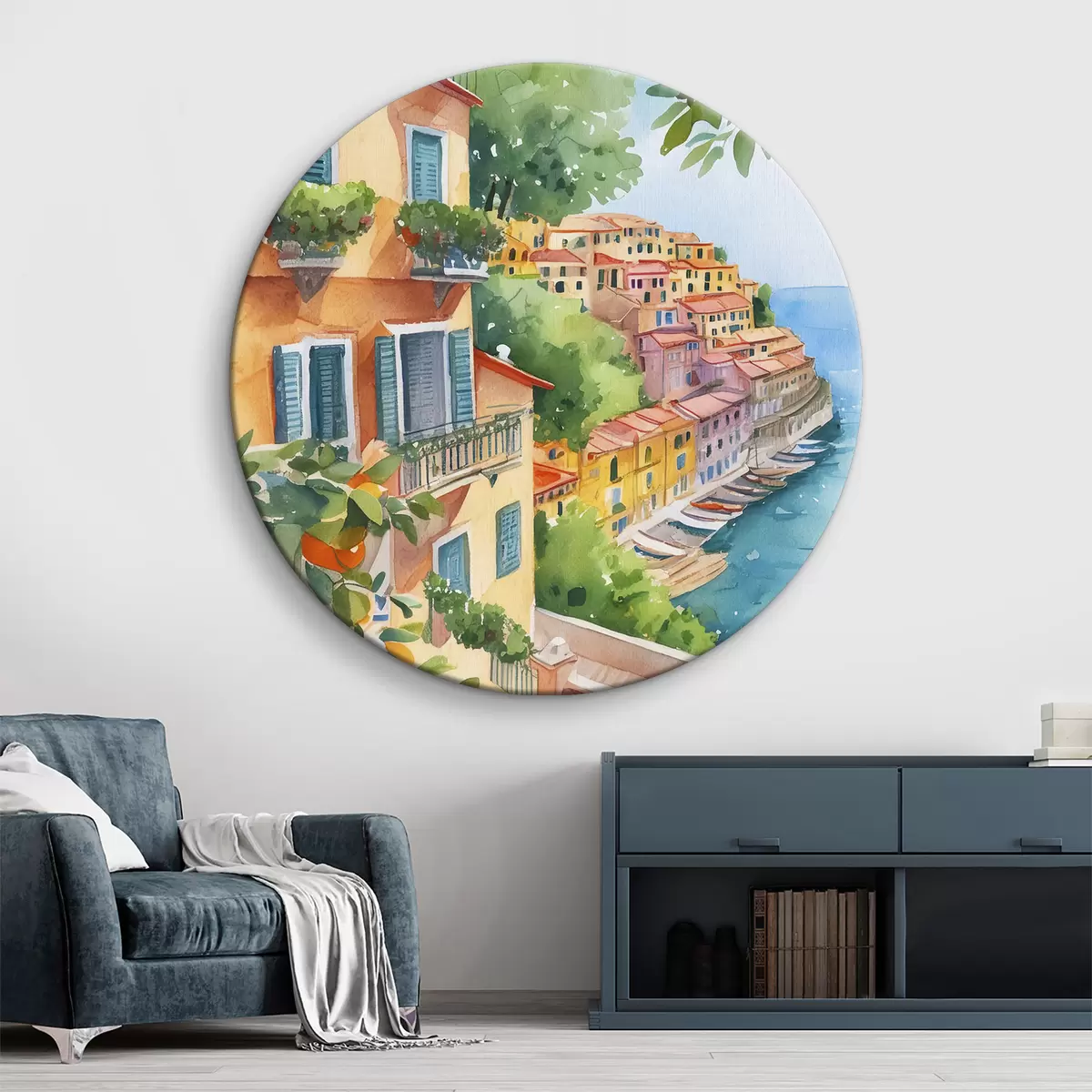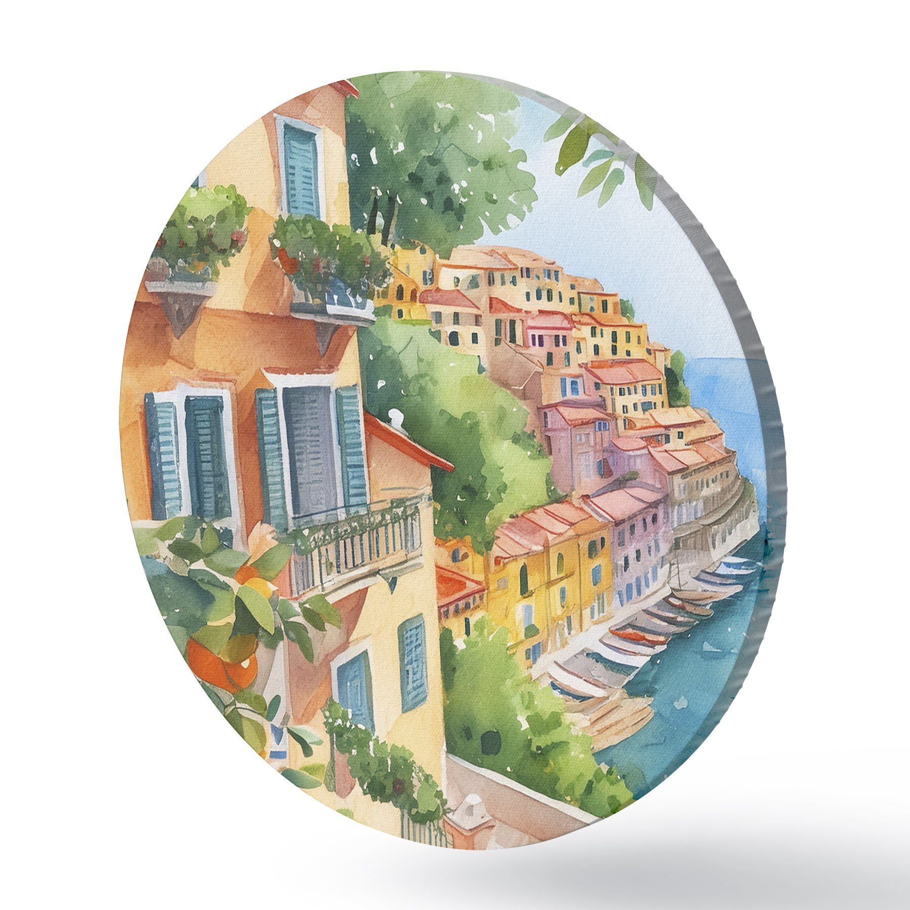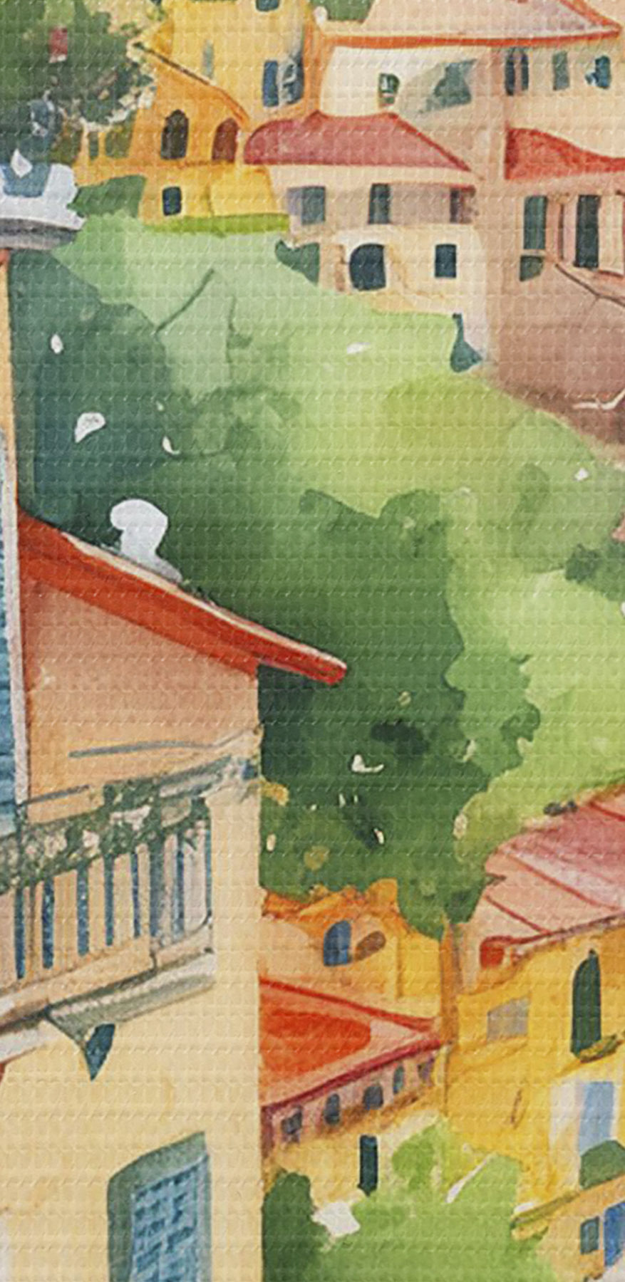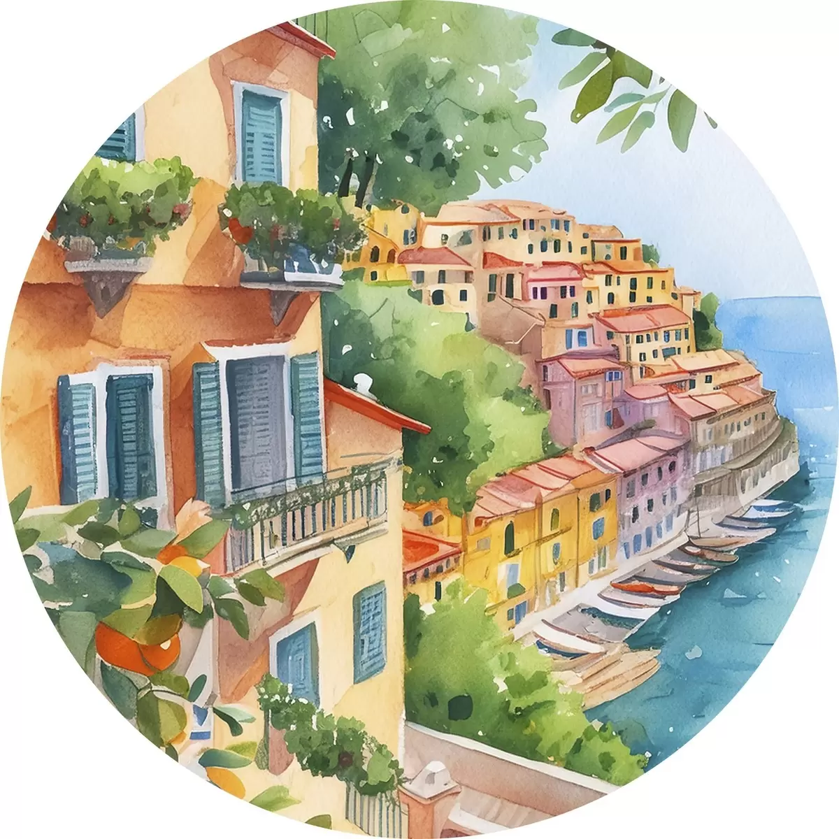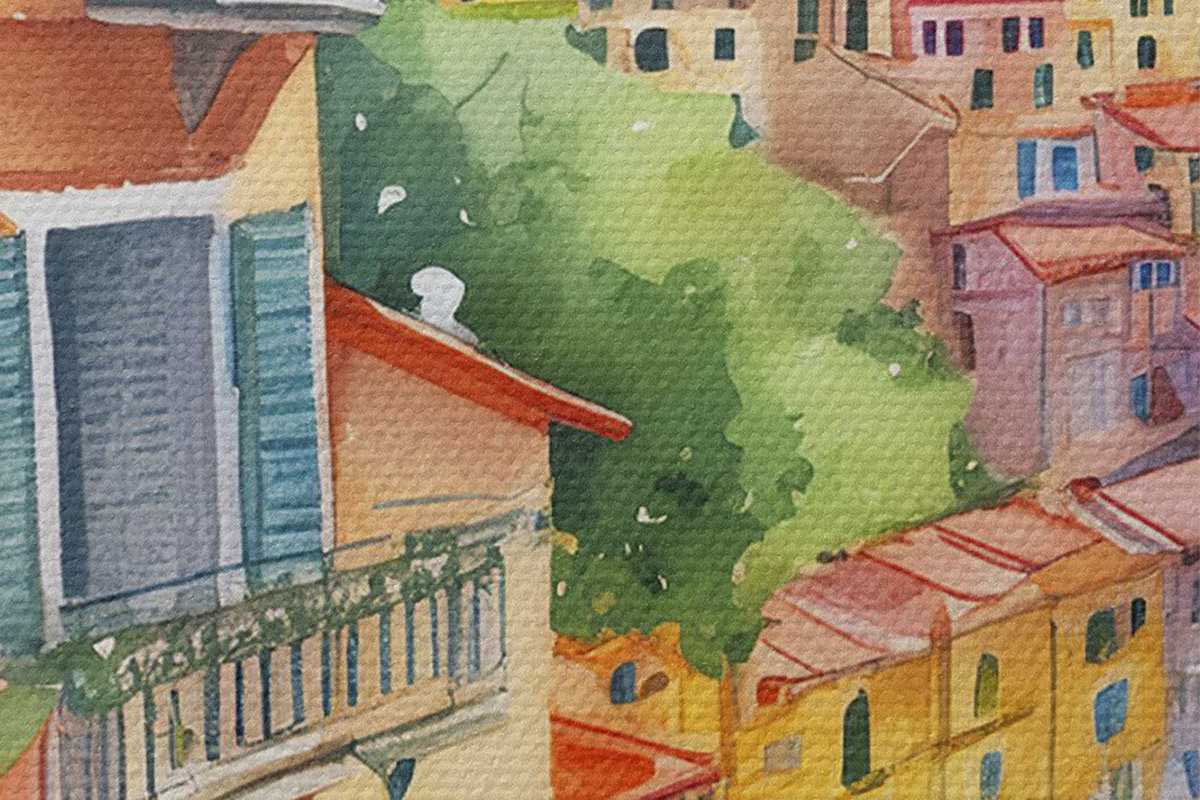 Nuotrauka Italijos miesto architektūra, Amalfio jūros pakrantė, vasara, akvarelė, citrinmedis Nr r38393
