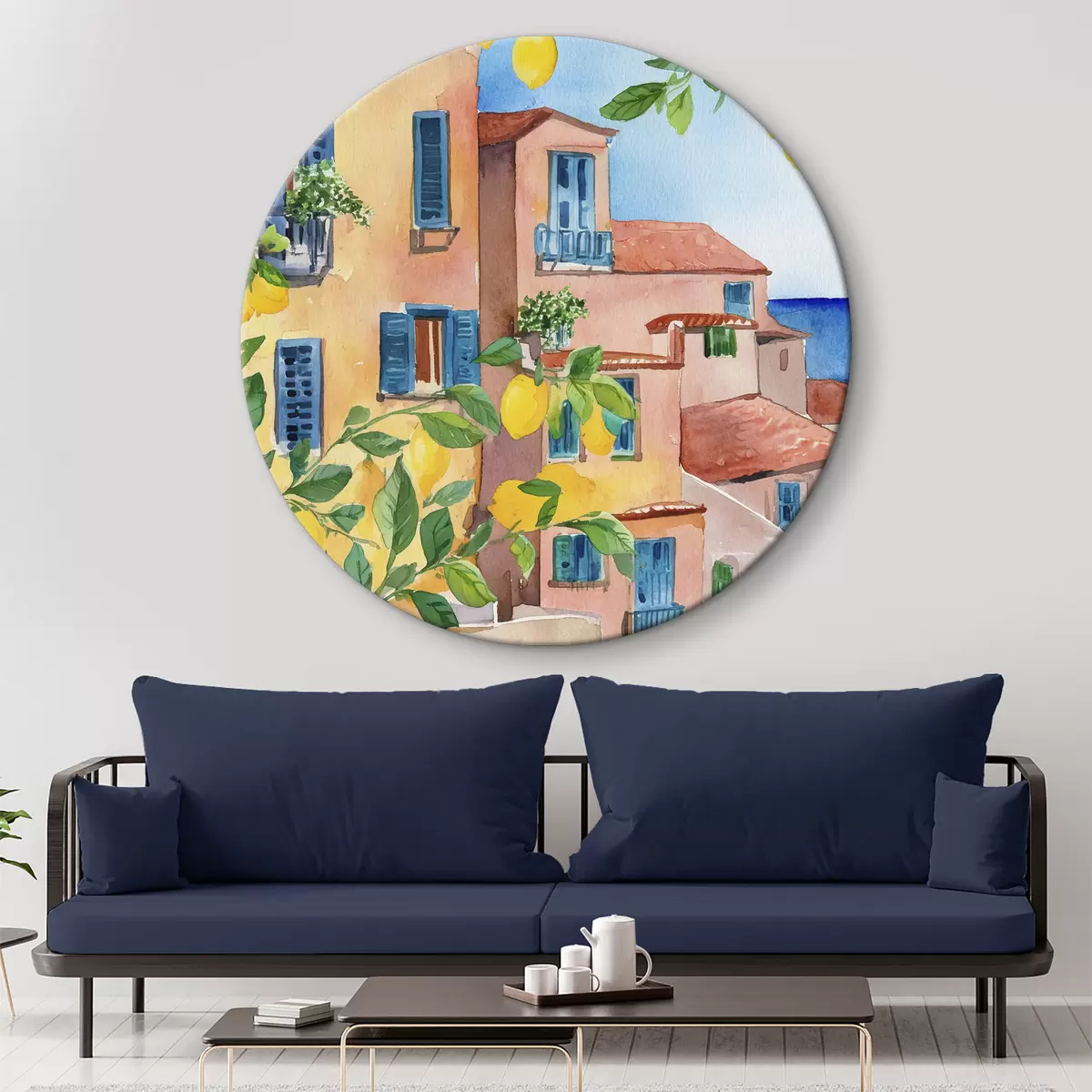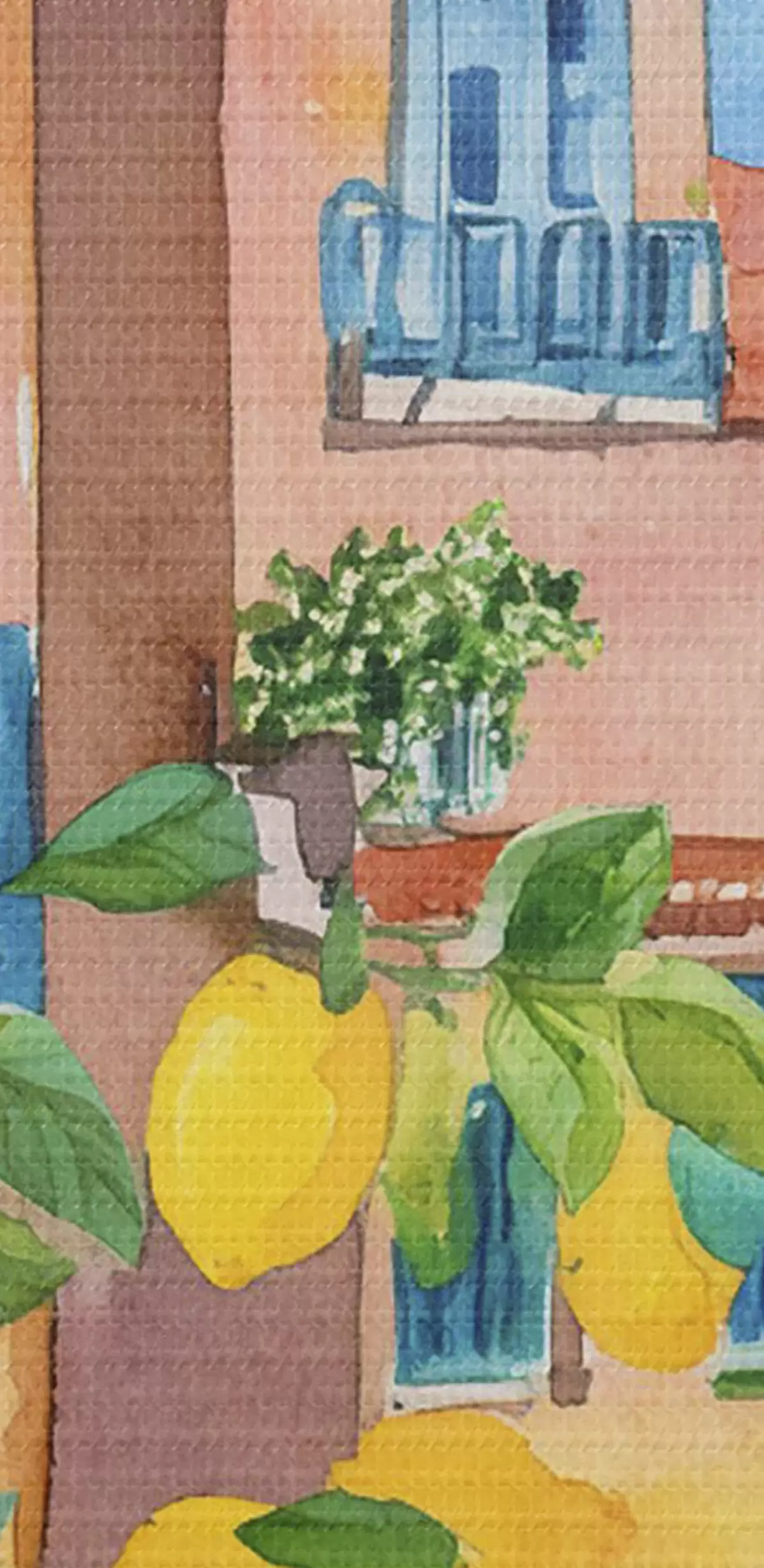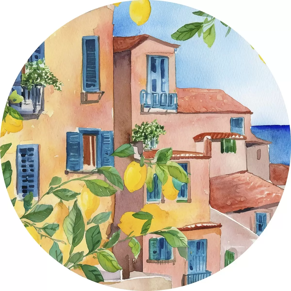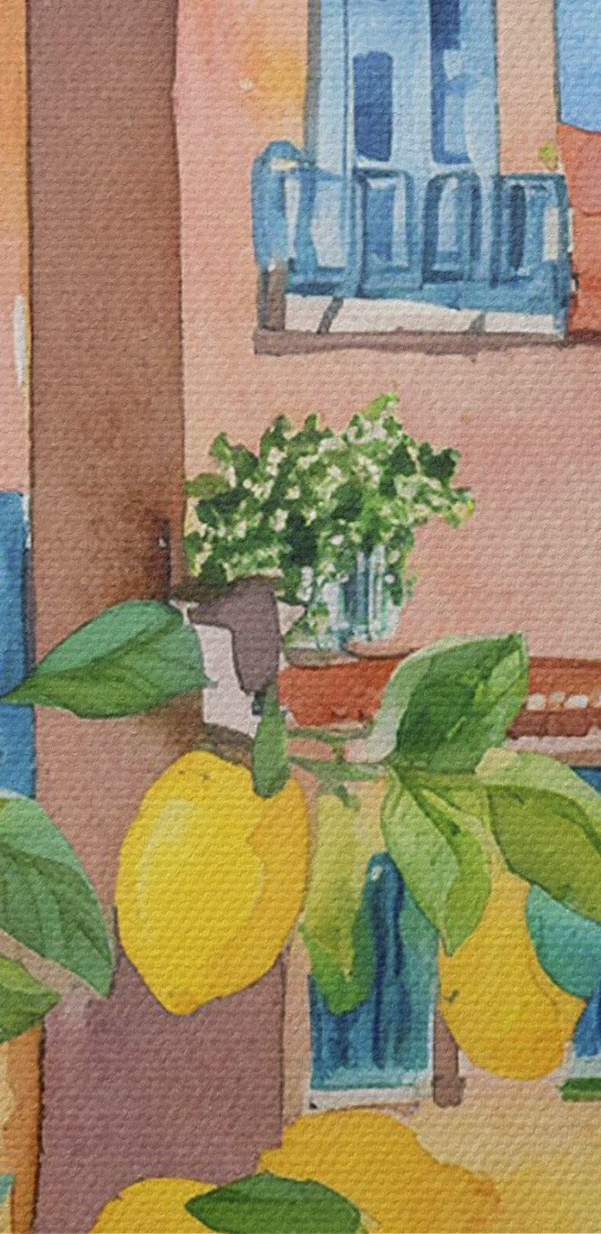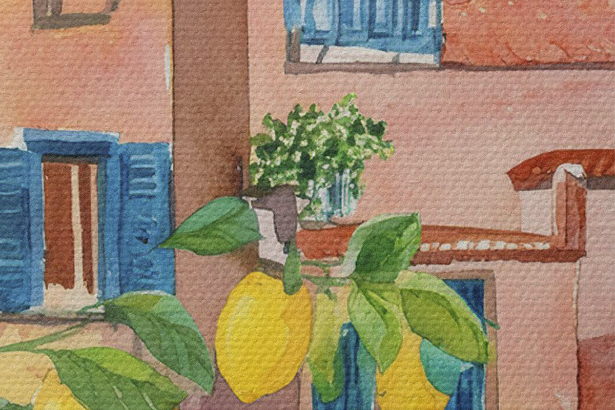 Nuotrauka Italijos miesto architektūra, jūros pakrantė, vasara, akvarelė, citrinmedis Nr r38395