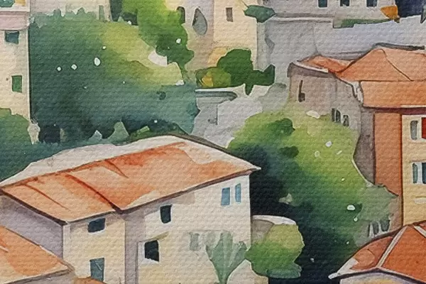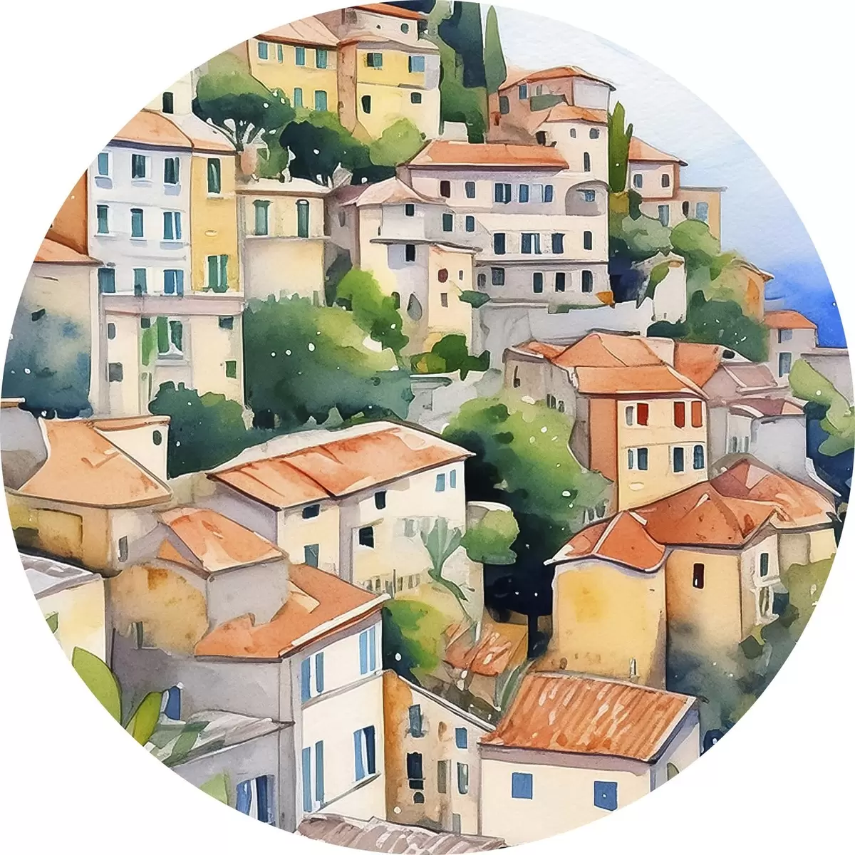 Nuotrauka Viduržemio jūros architektūra, akvarelė, vasara, apelsinai, senamiestis Nr r38396