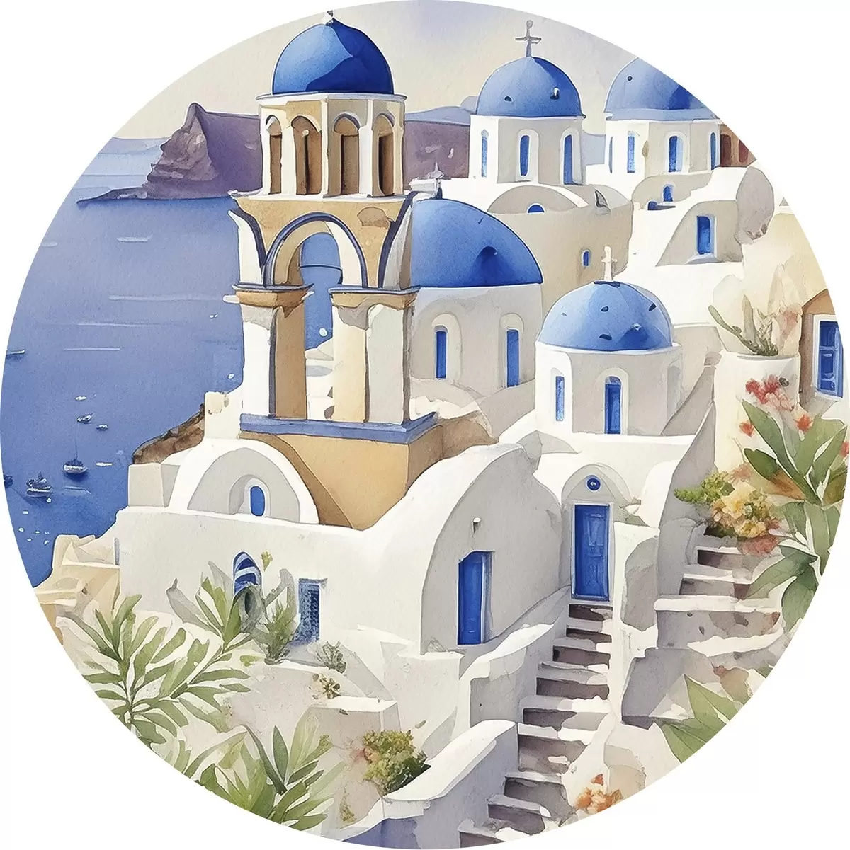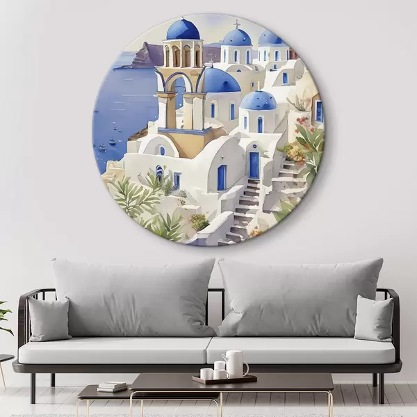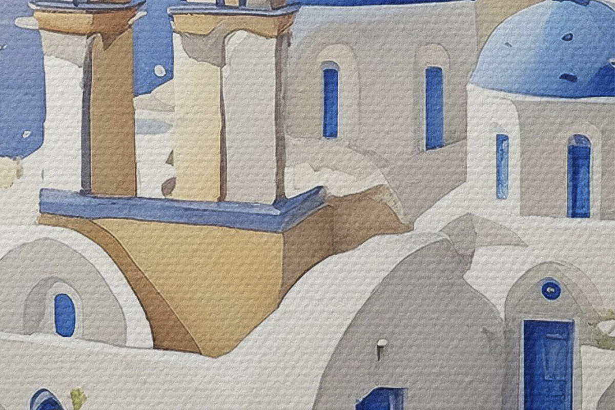Nuotrauka Santorini, Graikija architektūra, akvarelė, vasara, Viduržemio jūros pakrantė Nr r38400