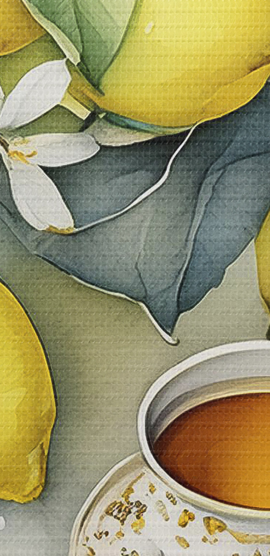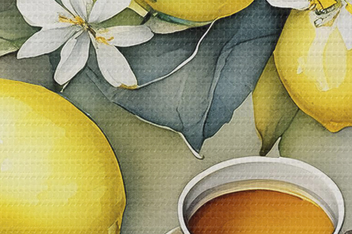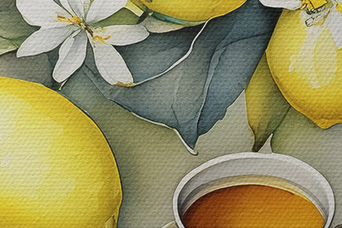 Nuotrauka Citrinos ir gėlės, akvarelė, pusryčiai, arbatos puodelis, bohemiškas stilius Nr r38403