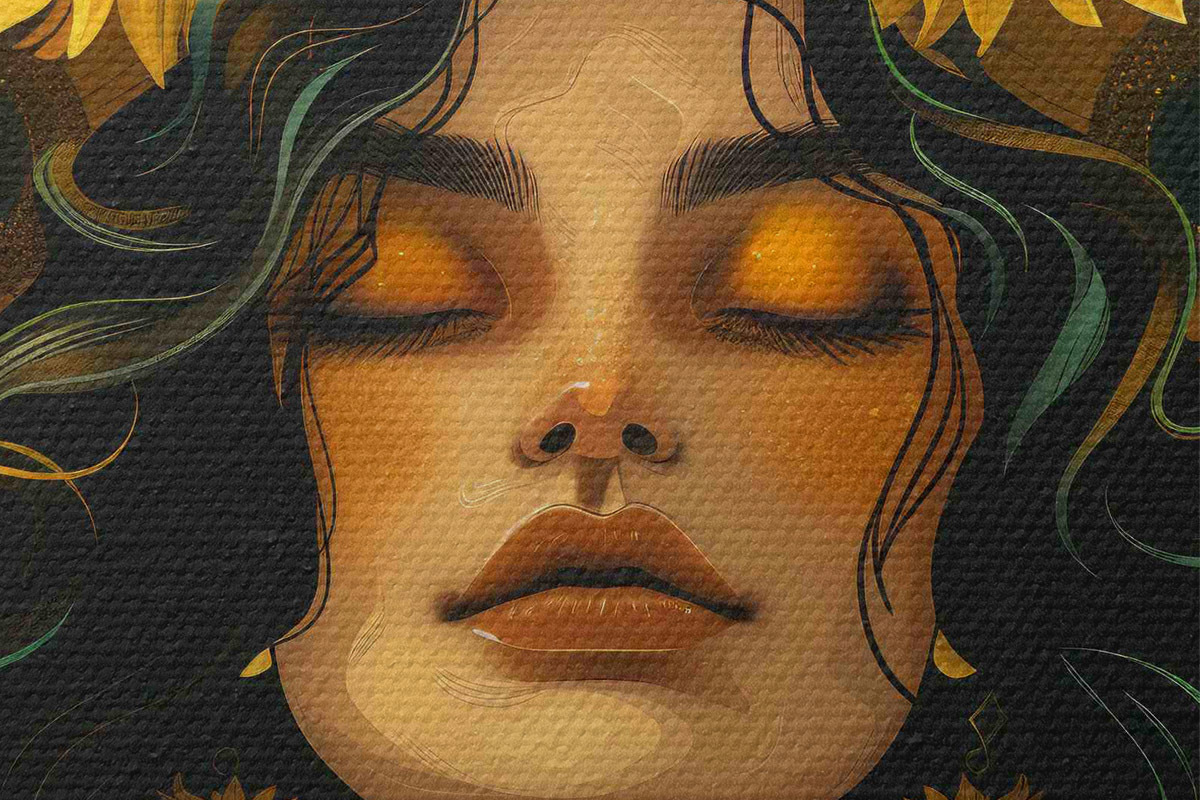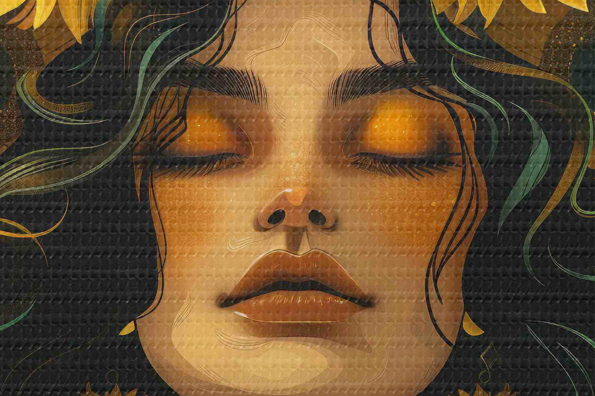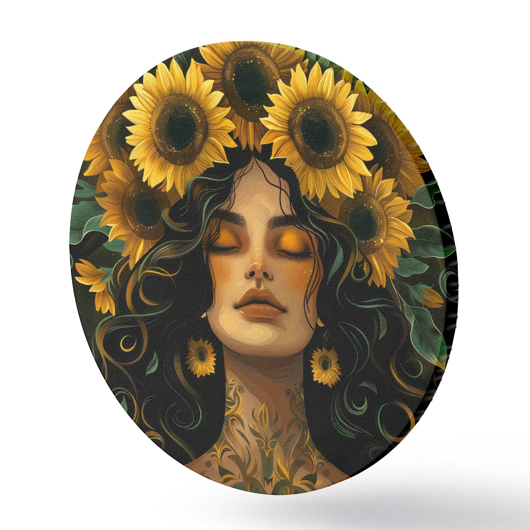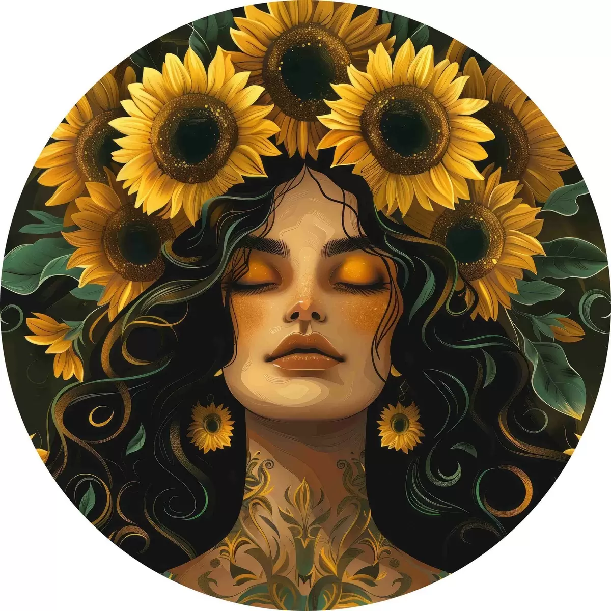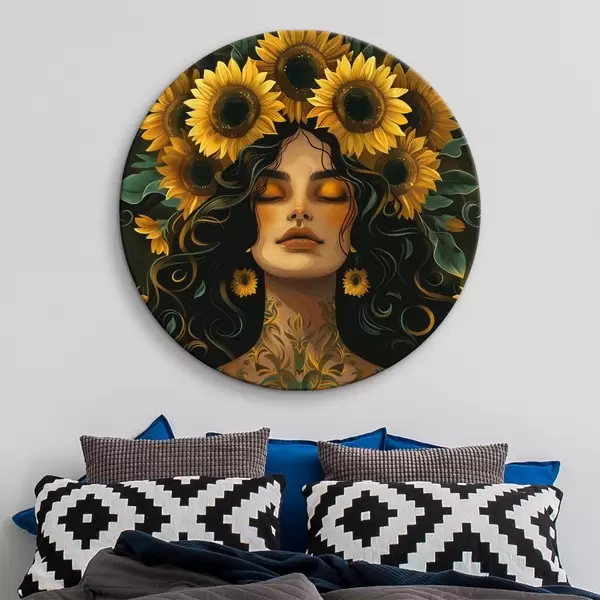 Nuotrauka Moteris su saulėgrąžomis plaukuose Nr r38412
