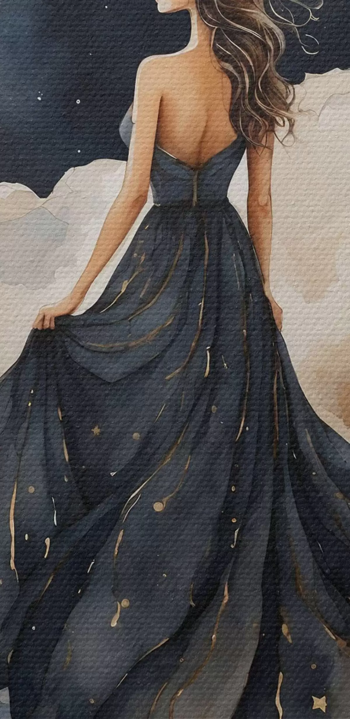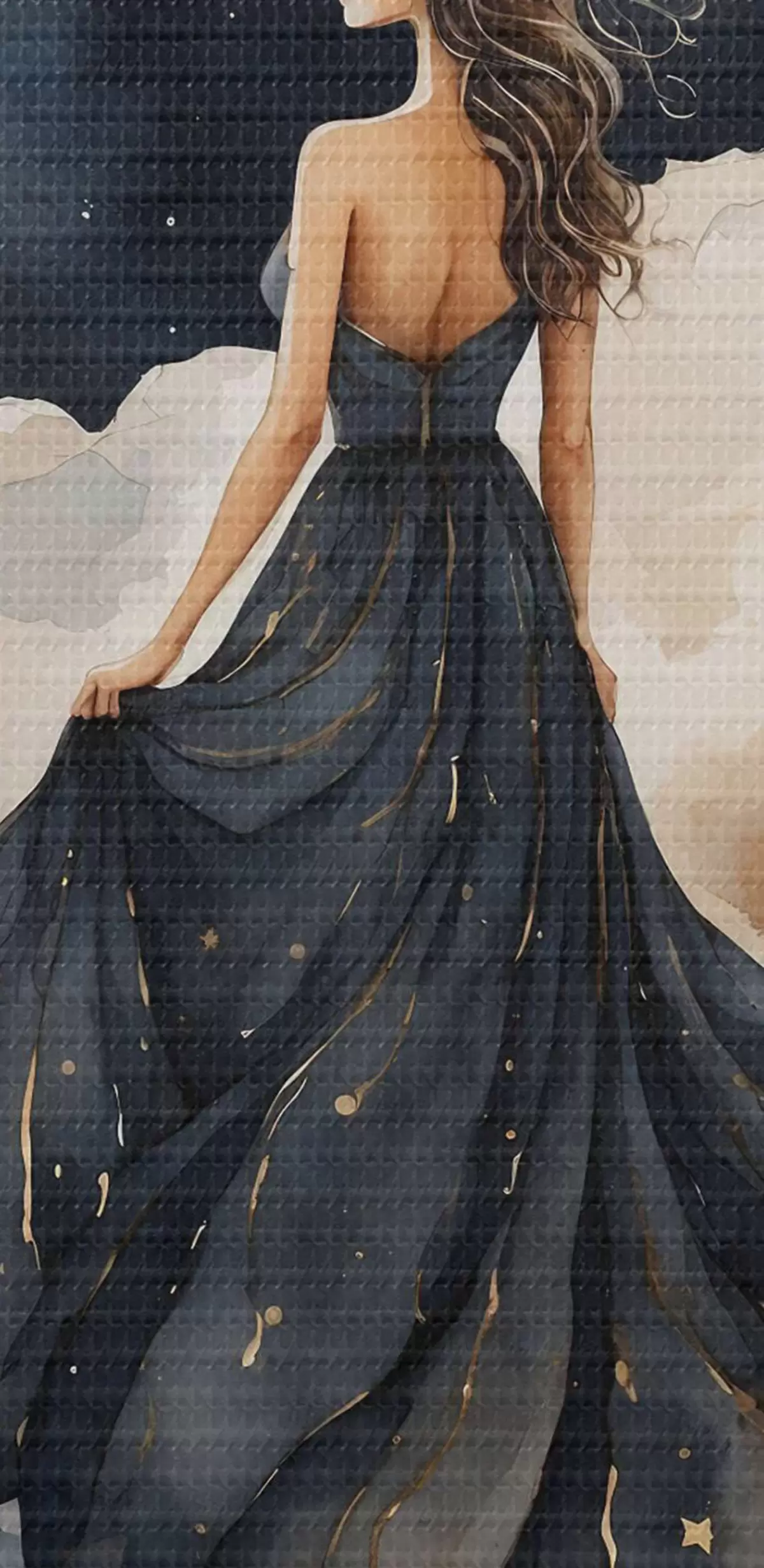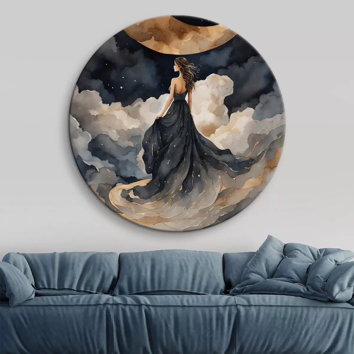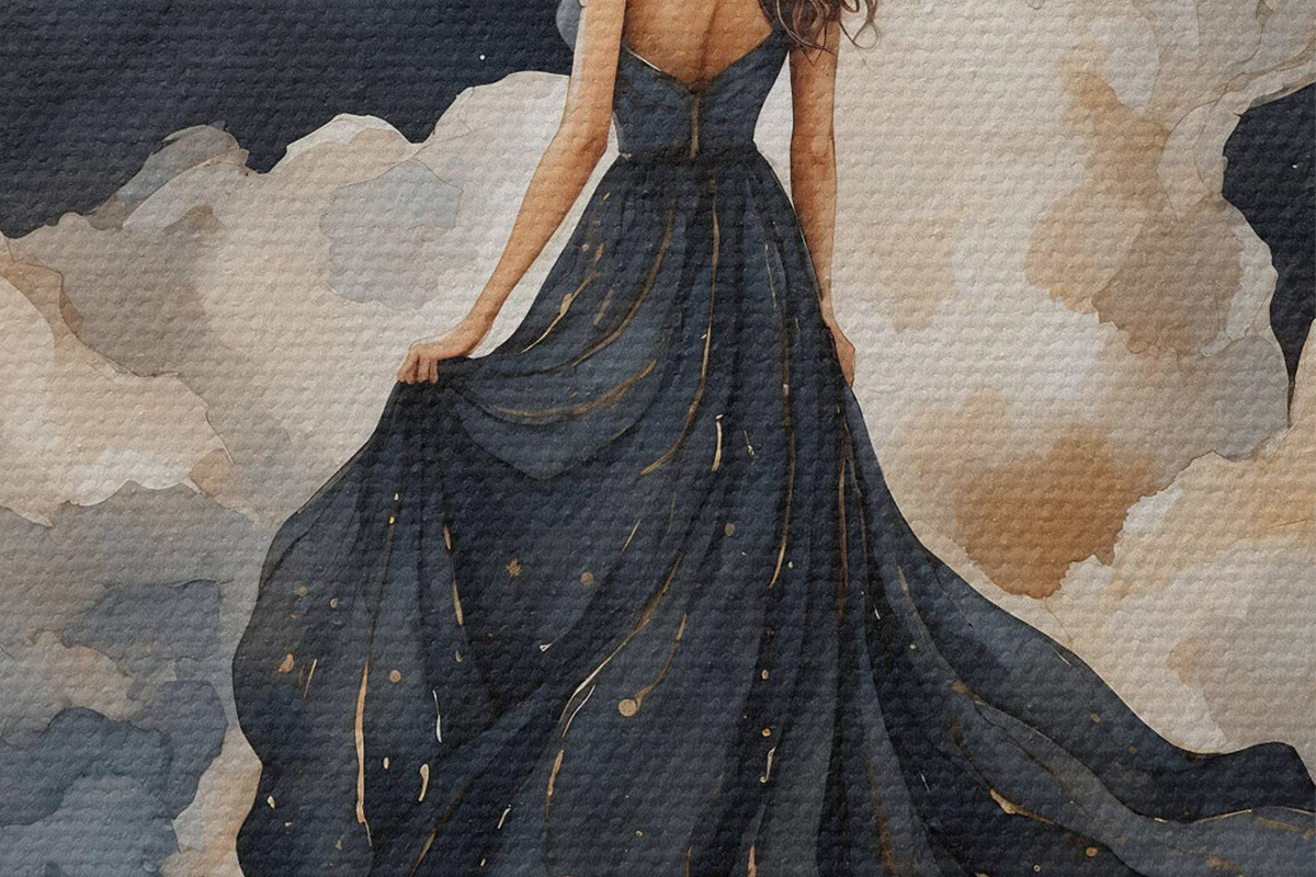 Nuotrauka Moteris mėlyna suknele ir mėnulis danguje Nr r38428