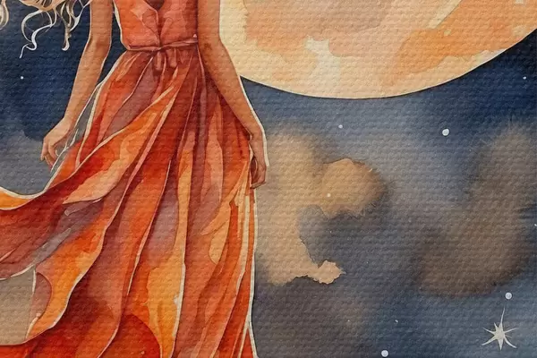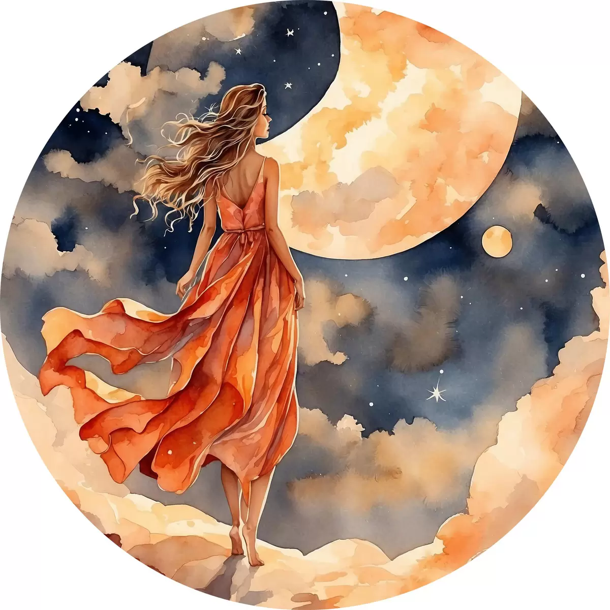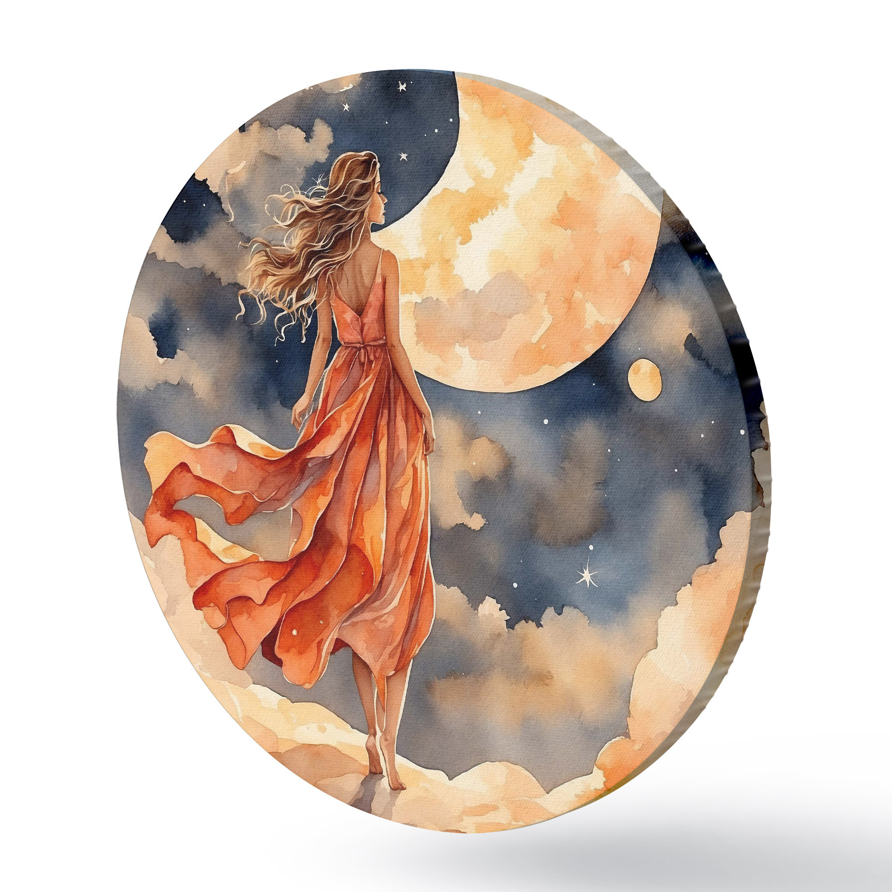 Nuotrauka Moteris su suknele vaikšto ant debesies Nr r38440