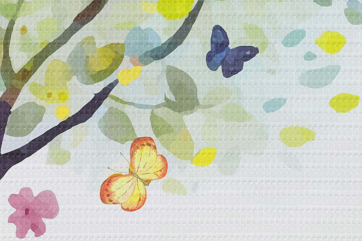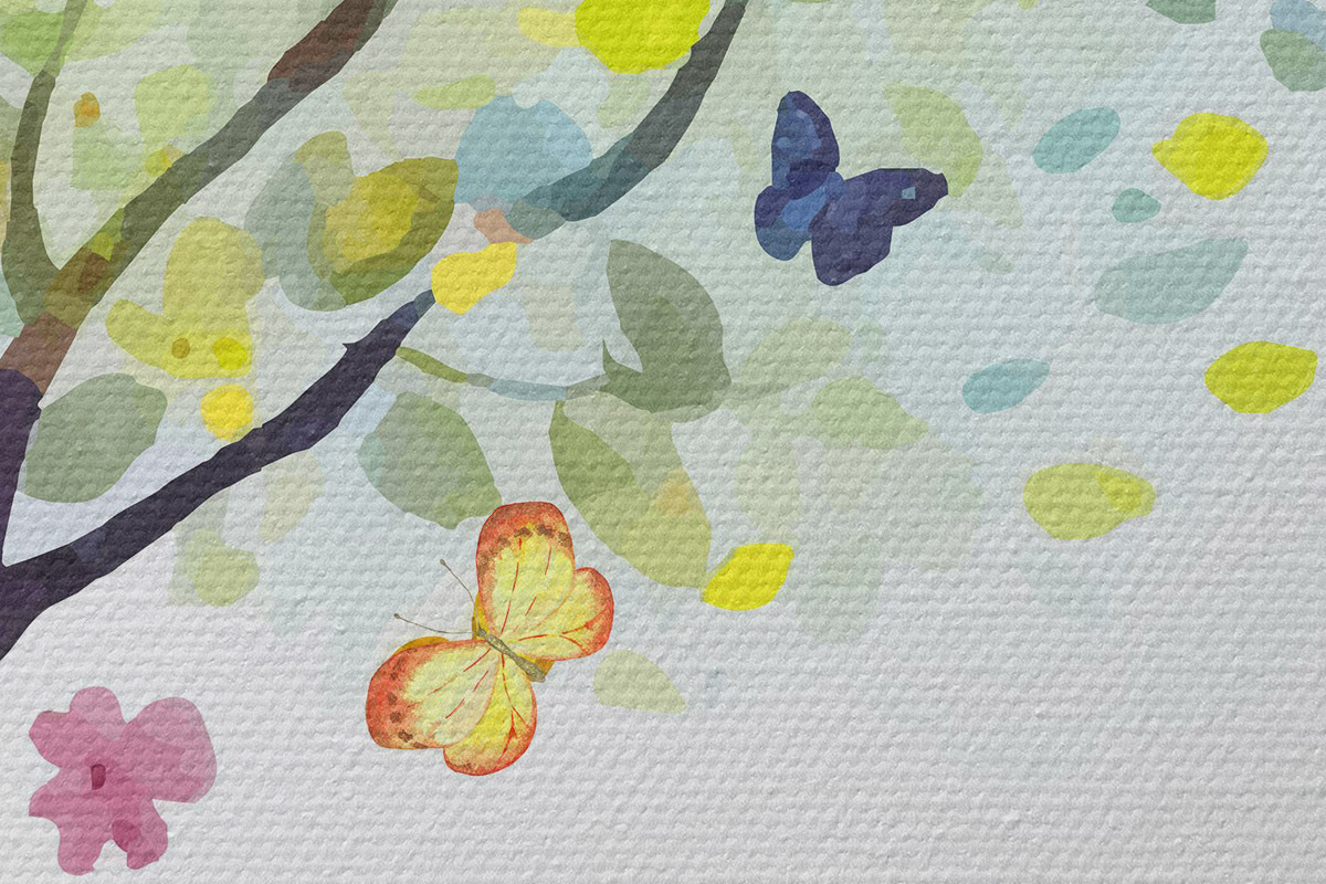 Nuotrauka medis su ryškiais lapais, akvareliniais dažais, drugeliais Nr r38444