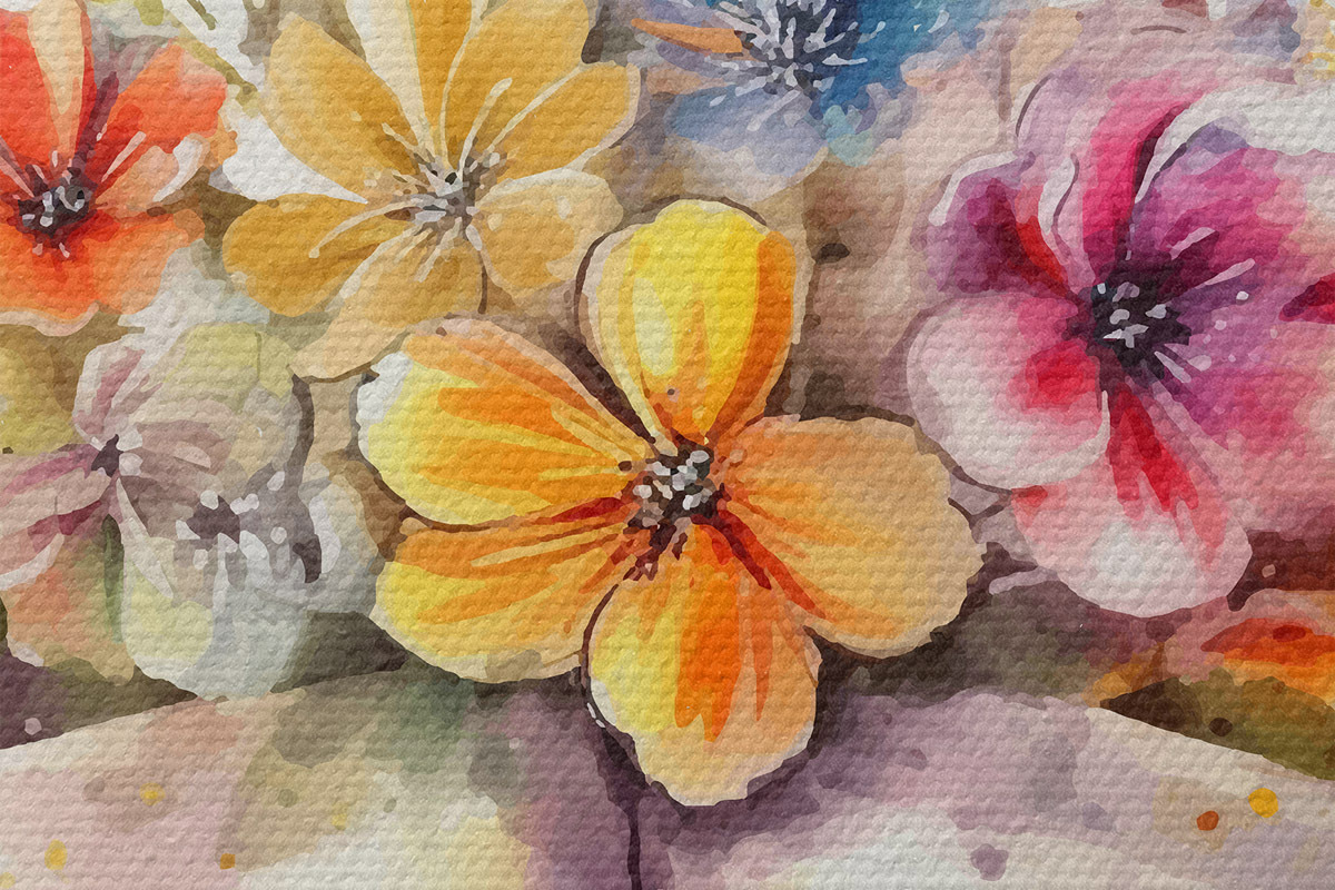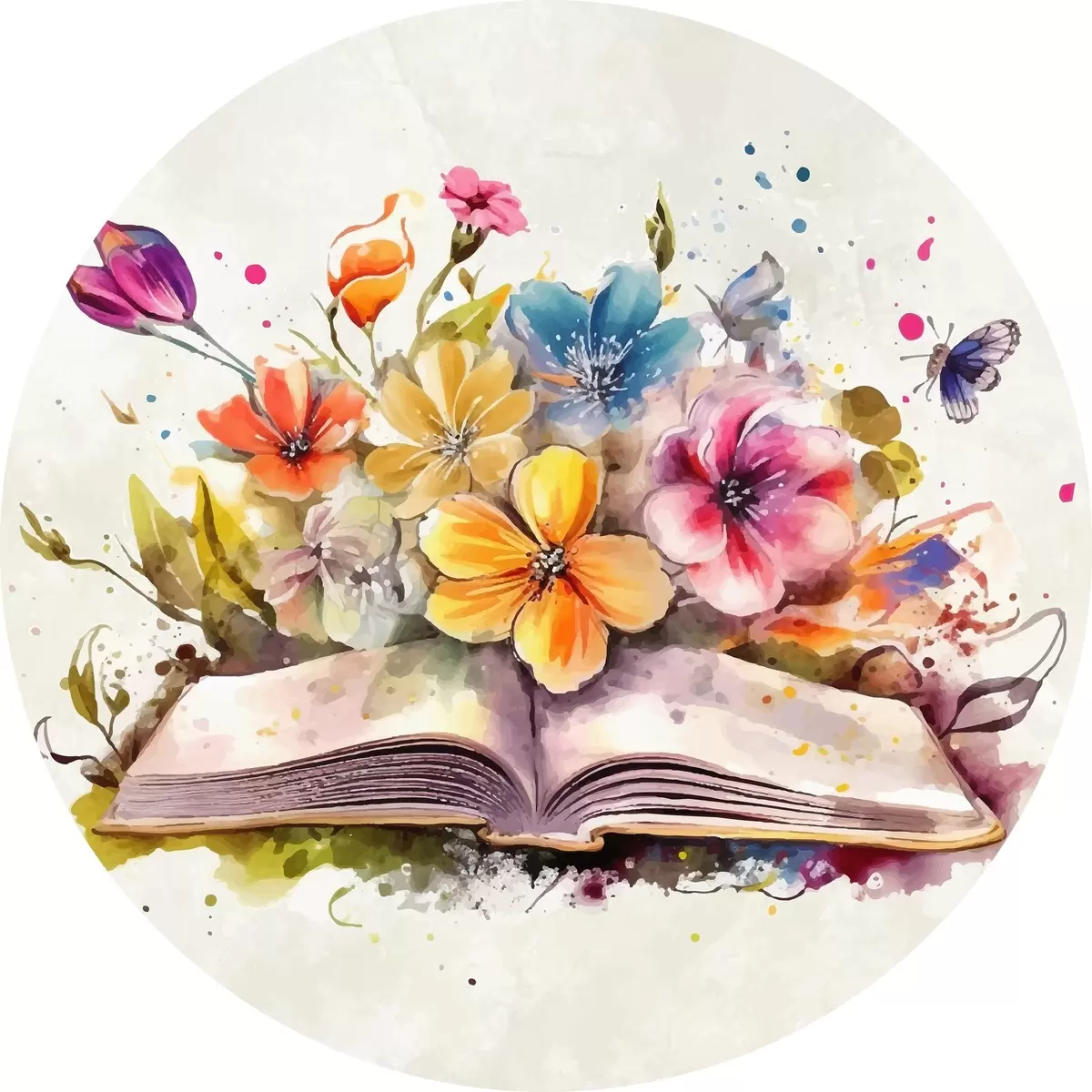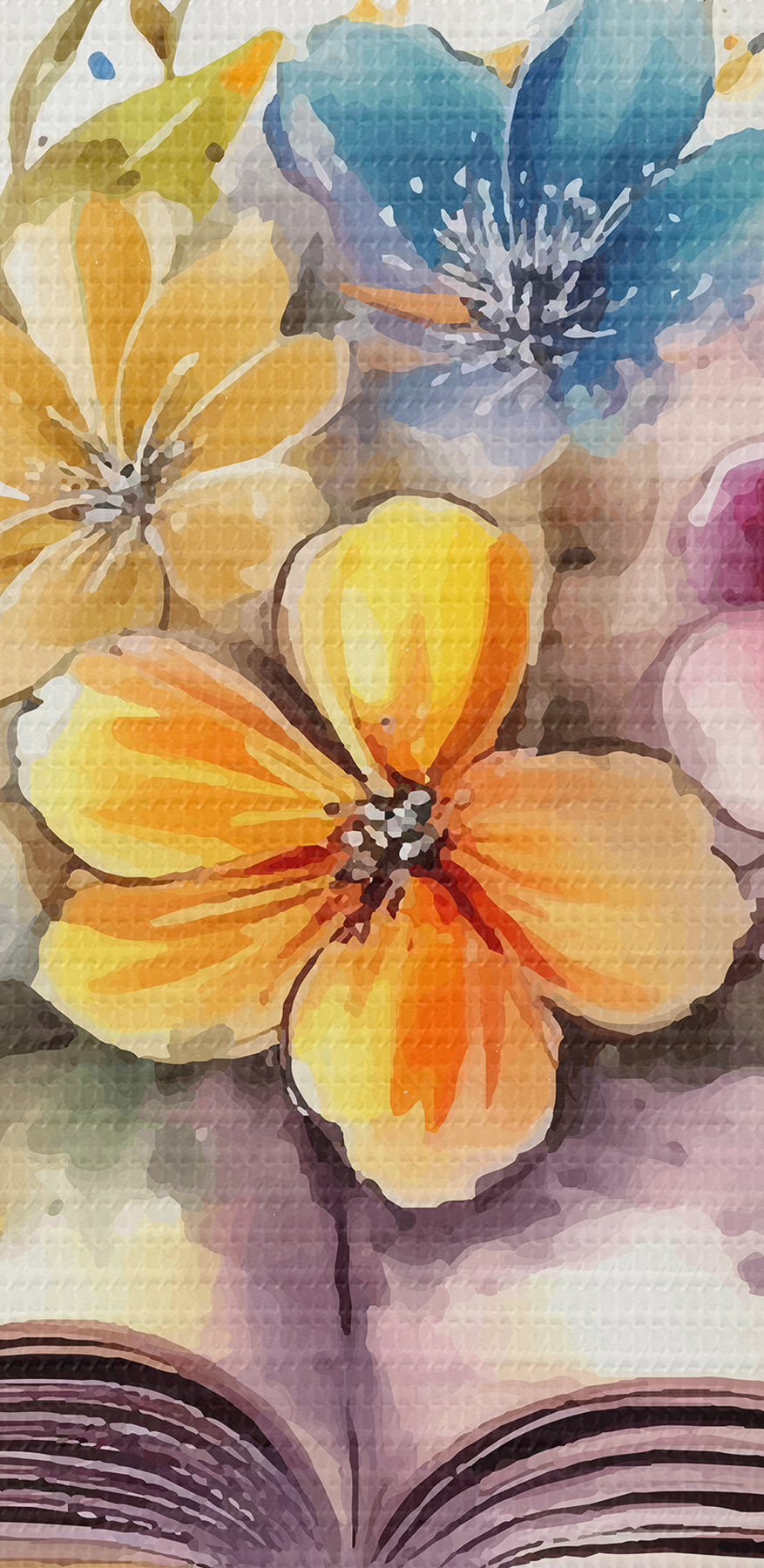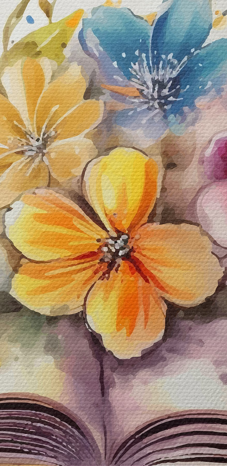 Nuotrauka atversta knyga su gėlėmis, akvareliniais dažais Nr r38446