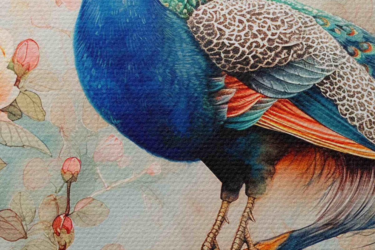 Nuotrauka Paveikslas, kuriame pavaizduotas povas ant šakos su gėlėmis Nr r38452