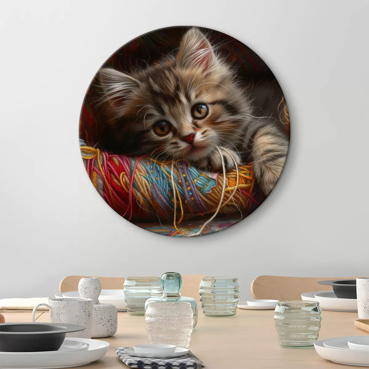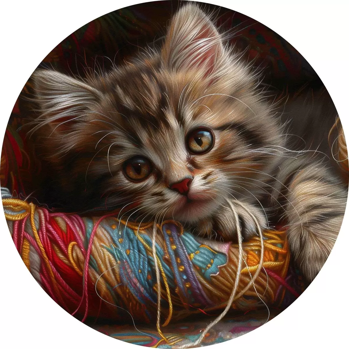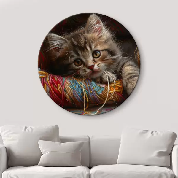 Nuotrauka Katė guli ant vilnos kamuolio Nr r38465