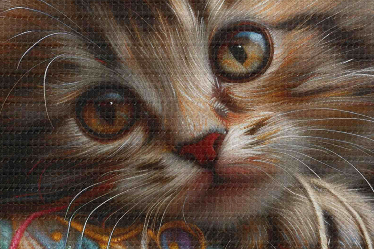 Smulkus siūlų pynimas ant šios drobės primena profesionalių dailininkų drobių paviršių.