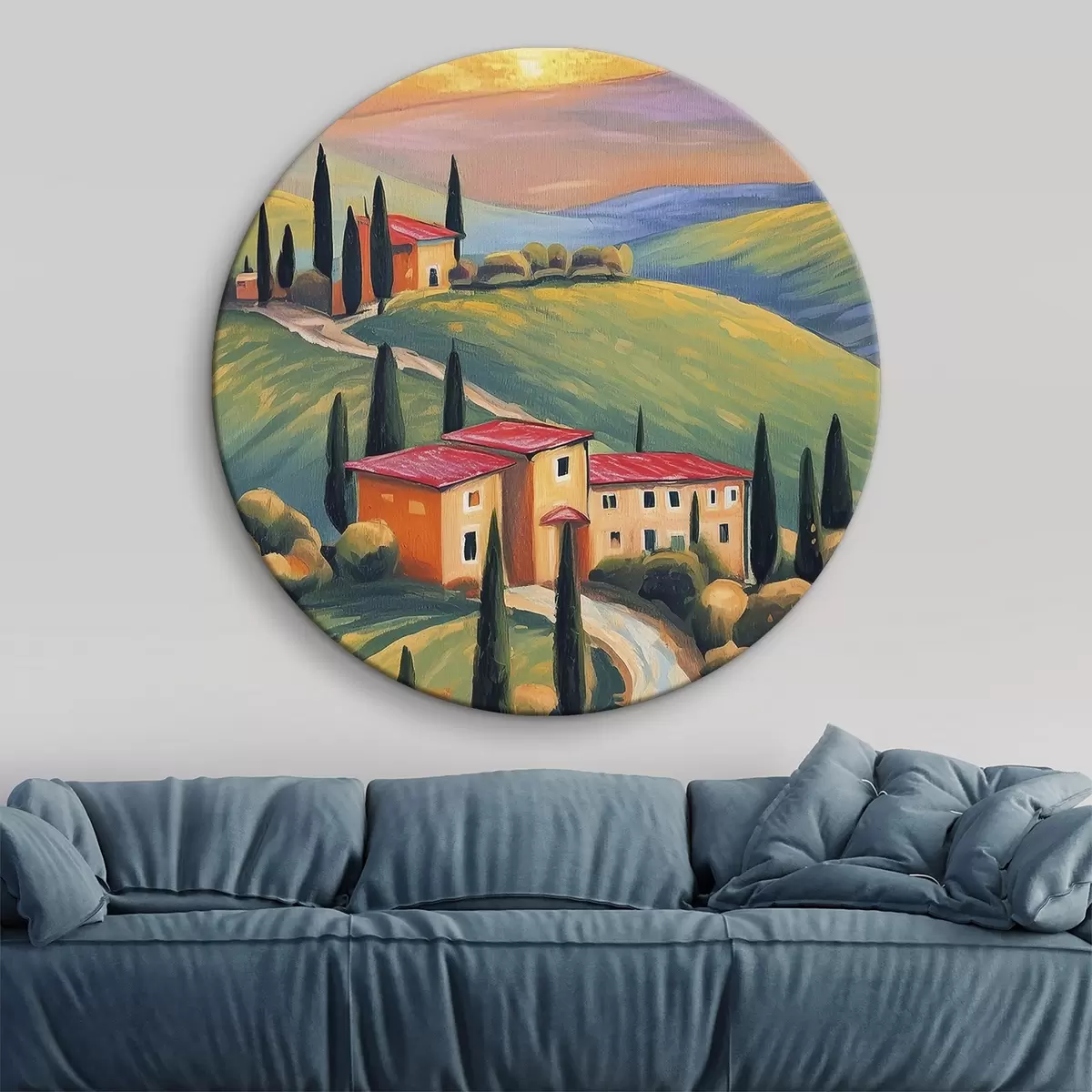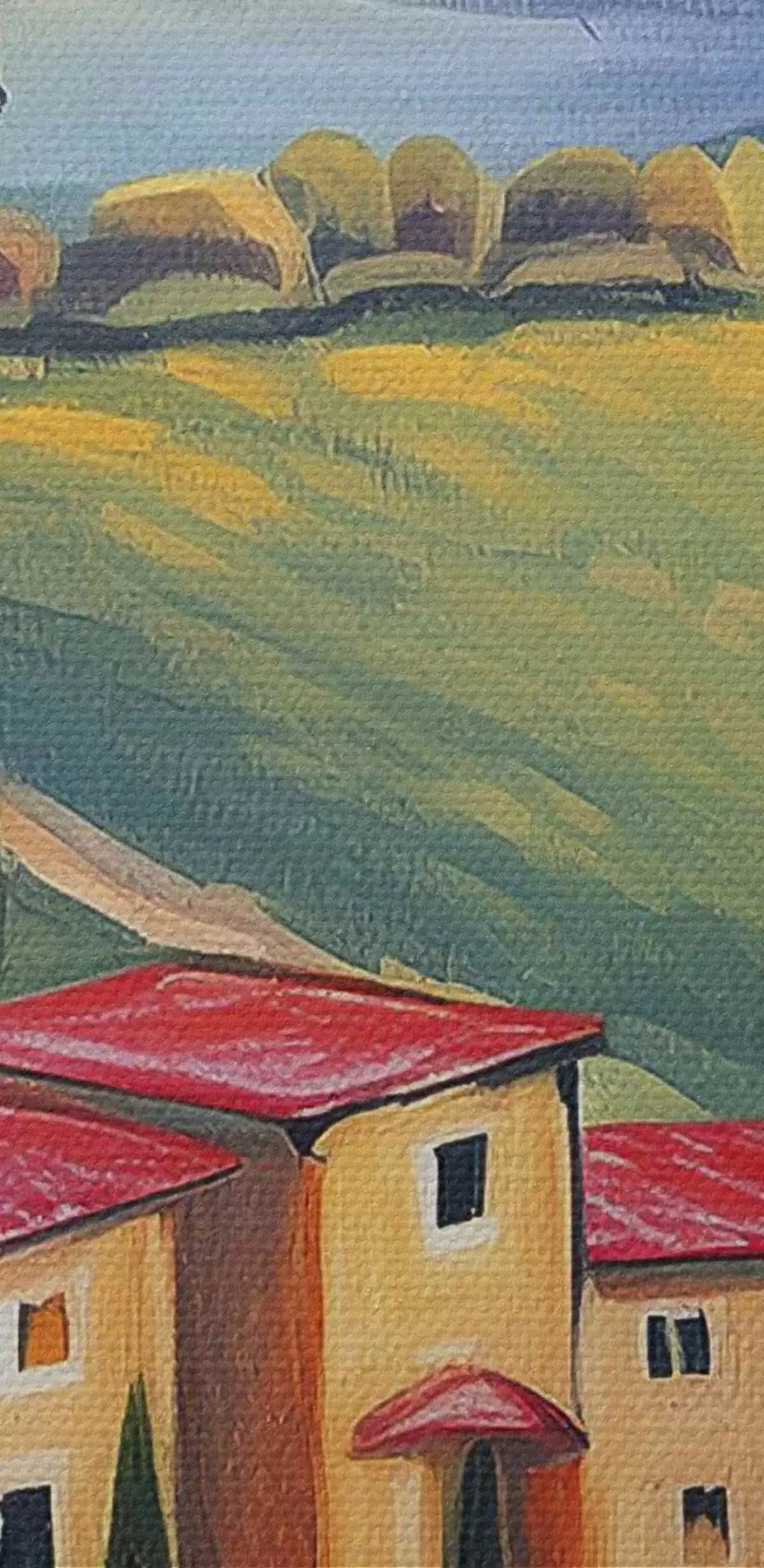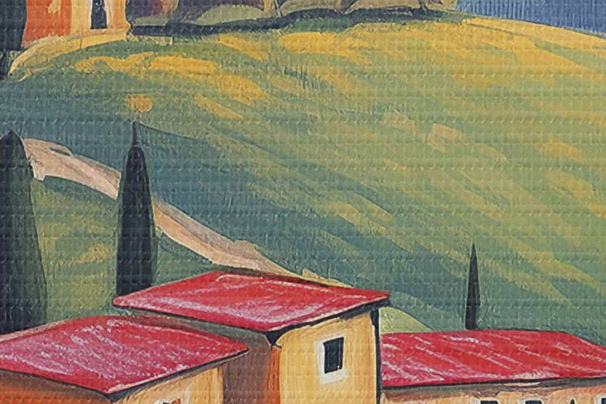 Nuotrauka Toskanos kraštovaizdžiai, Italija, akrilo menas, seni namai, laukai, vasara Nr r38488
