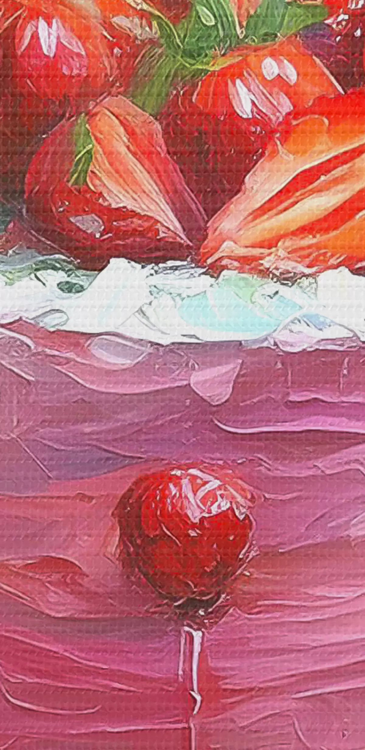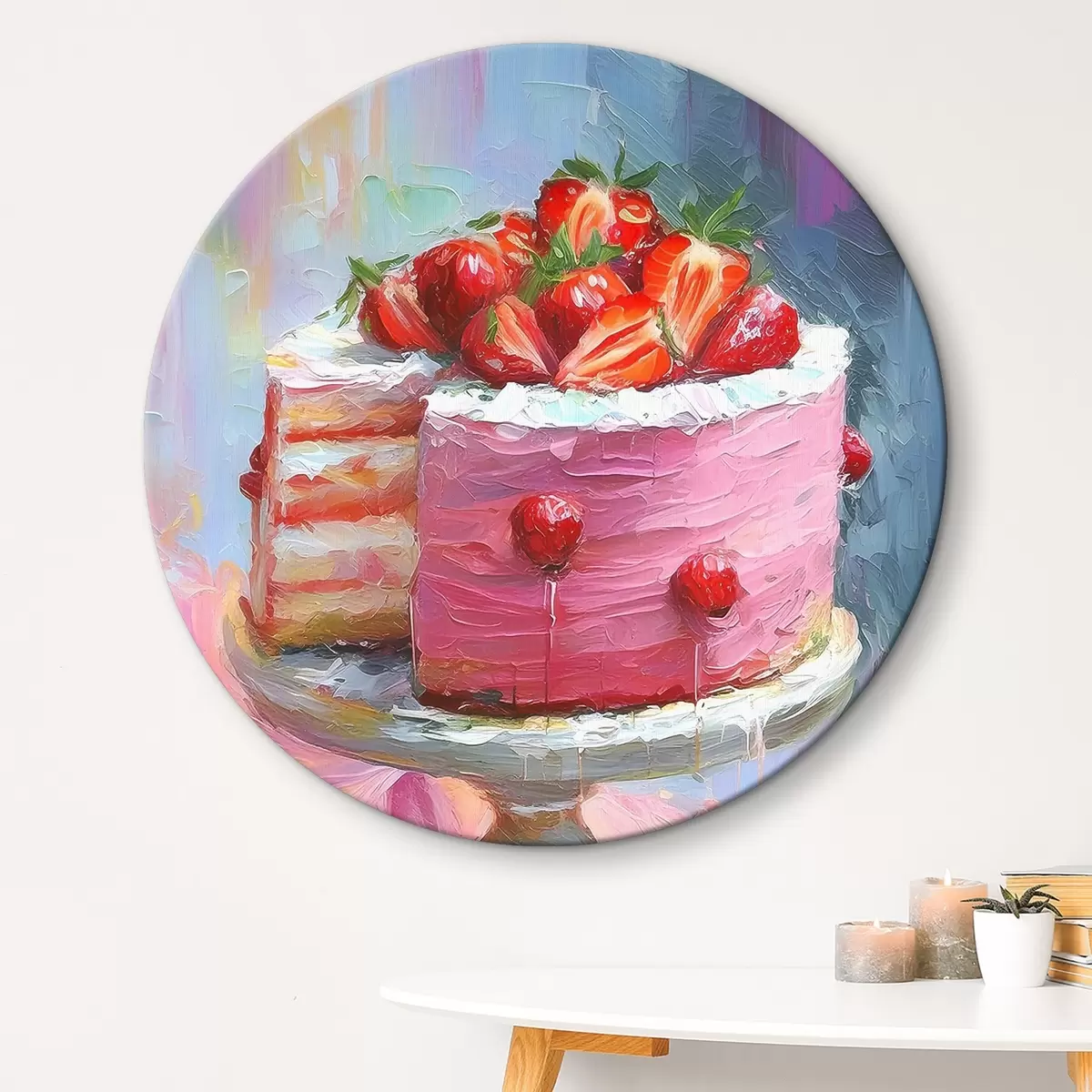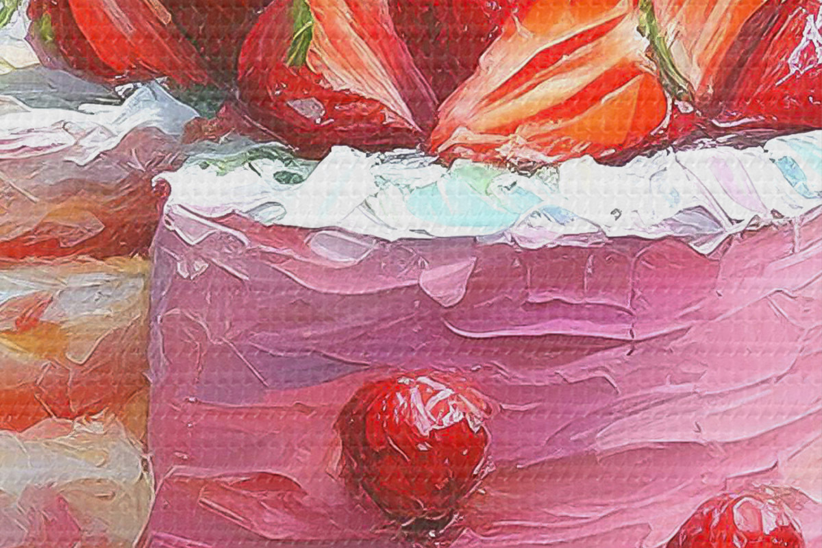 Nuotrauka Braškių pyragas su kremu, aliejiniais dažais, dideliais potėpiais, vasarinėmis uogomis, rožinės spalvos Nr r38499