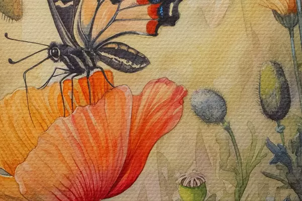 Nuotrauka Aguonų ir drugelių laukas Nr r38520