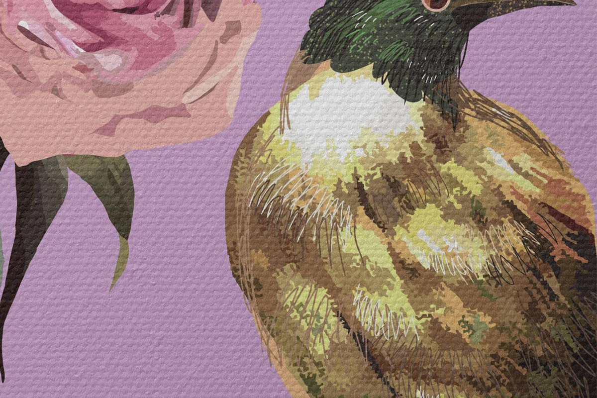 Nuotrauka Paukštis ant šakos su gėlėmis Nr r38564