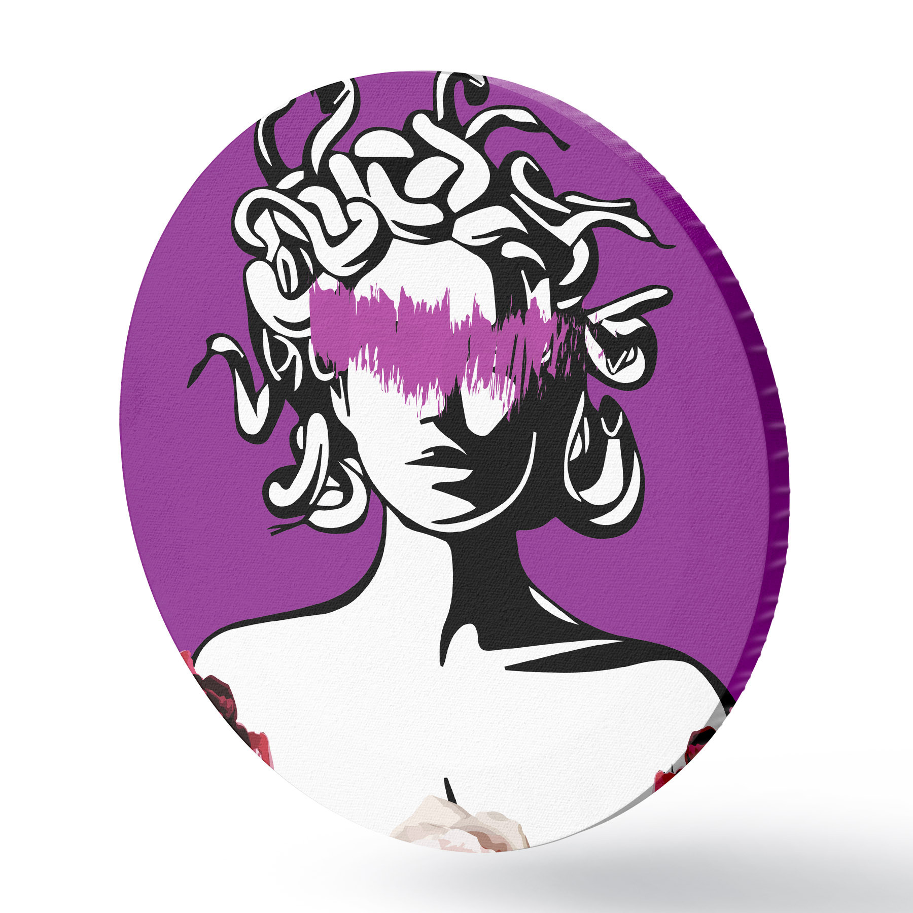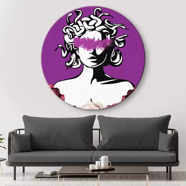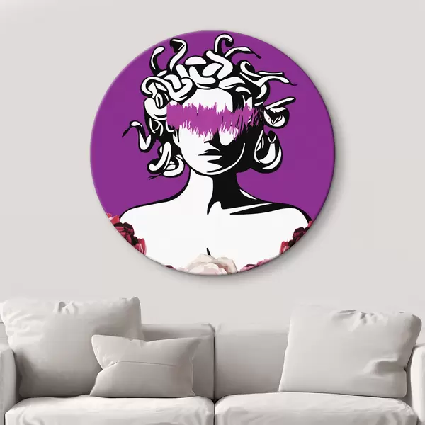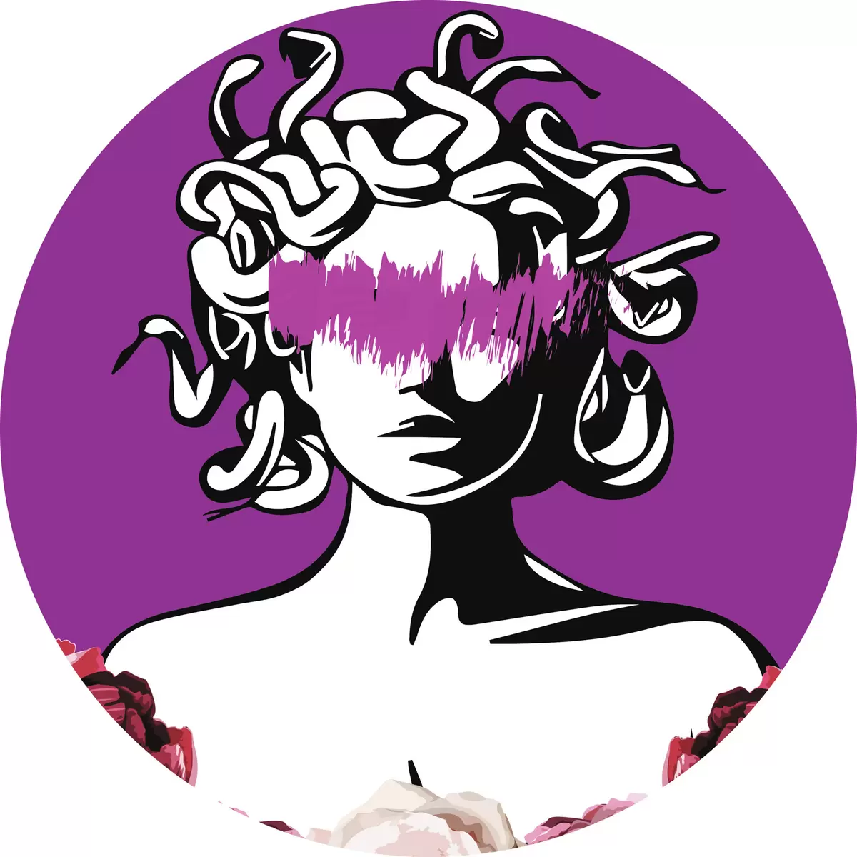 Nuotrauka Gorgon Medusa rožiniame fone su gėlėmis Nr r38567v2
