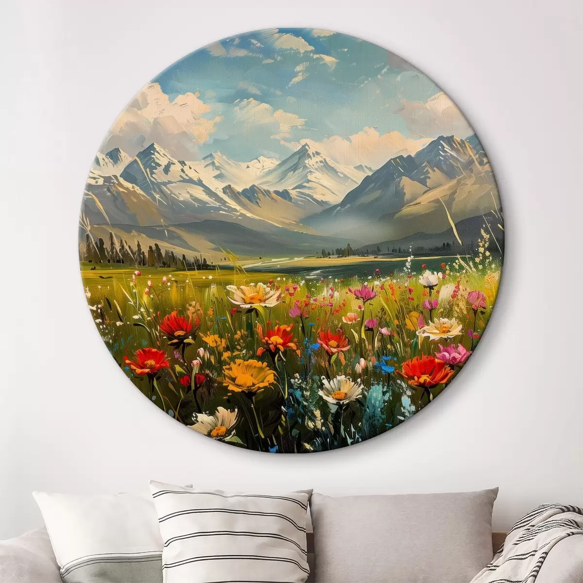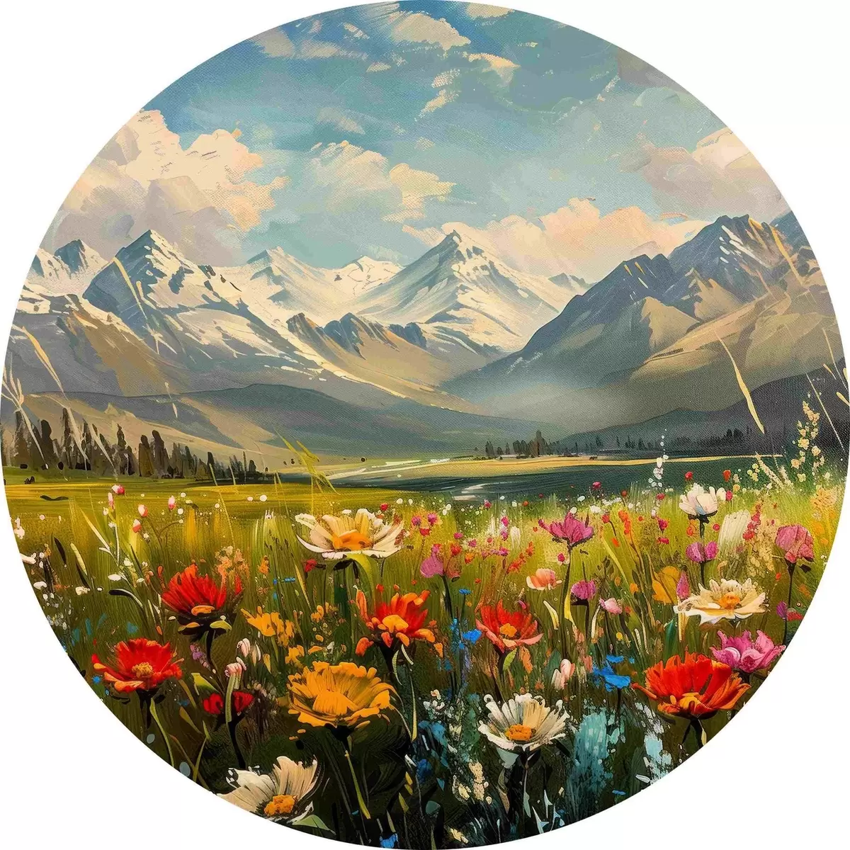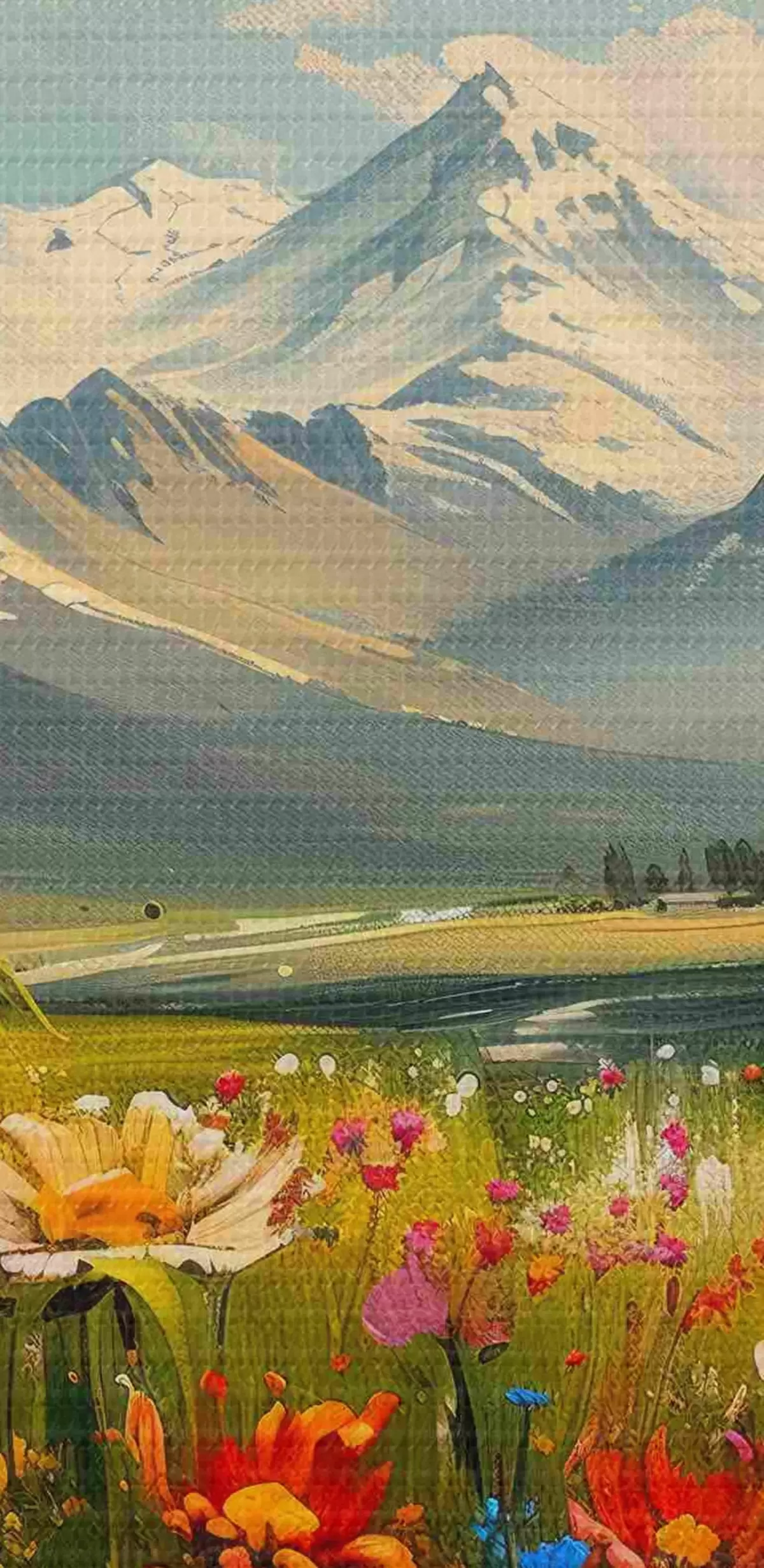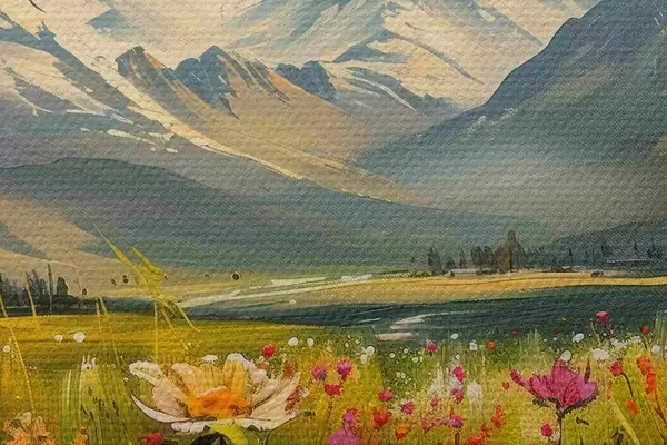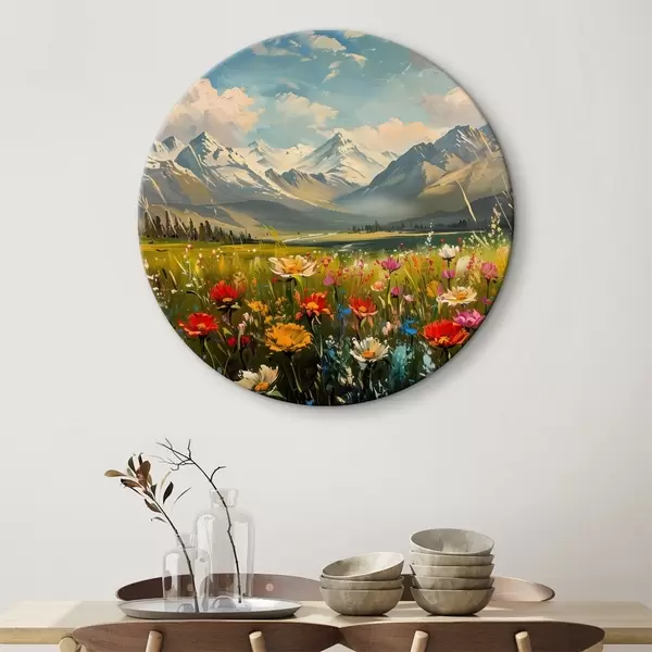Nuotrauka Žydinčios pievos po snieguotomis viršūnėmis Nr r38573