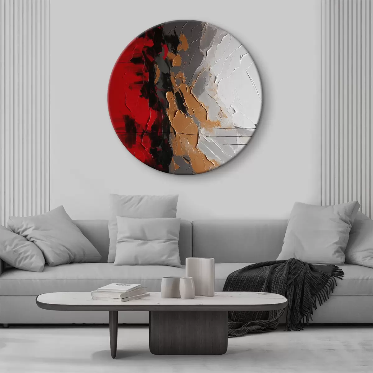 Apvalūs paveikslai Drąsūs raudonos, baltos ir pilkos spalvos potėpiai r38580