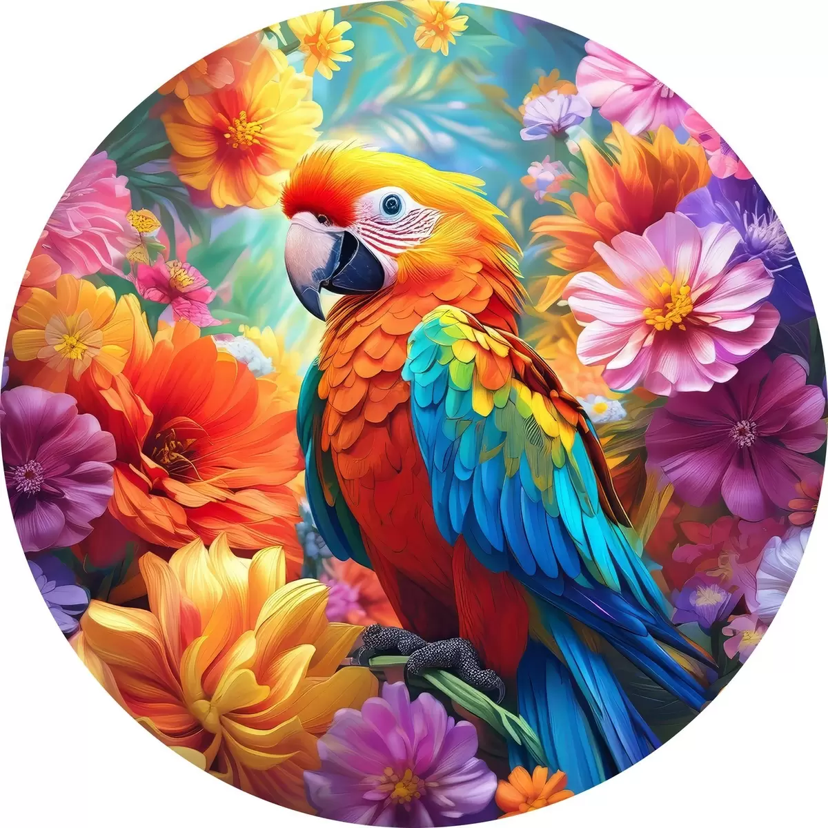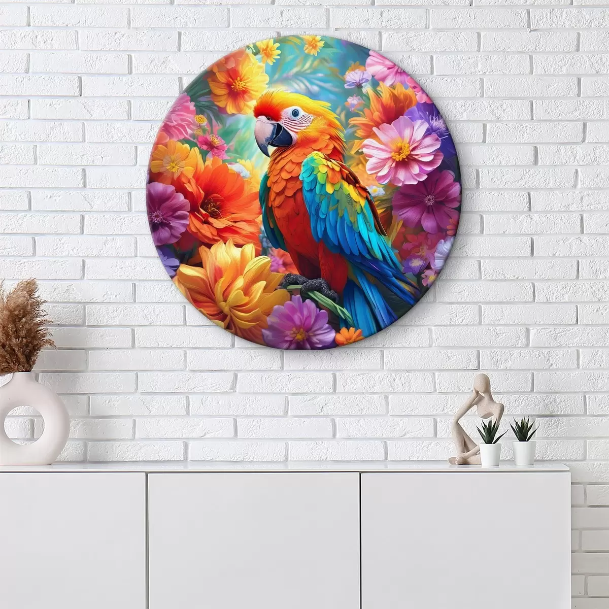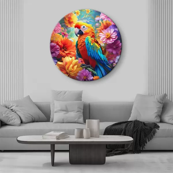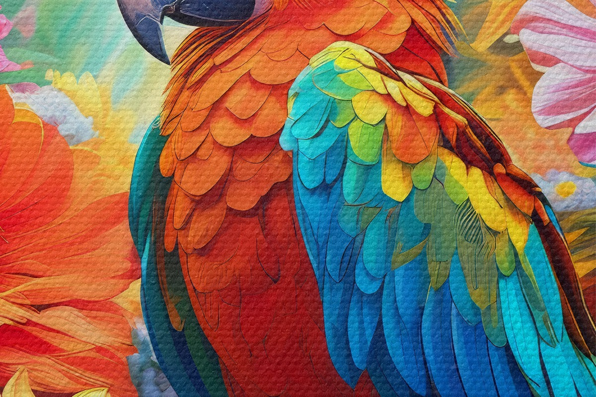Nuotrauka ryški papūga ir spalvingos gėlės Nr r38611