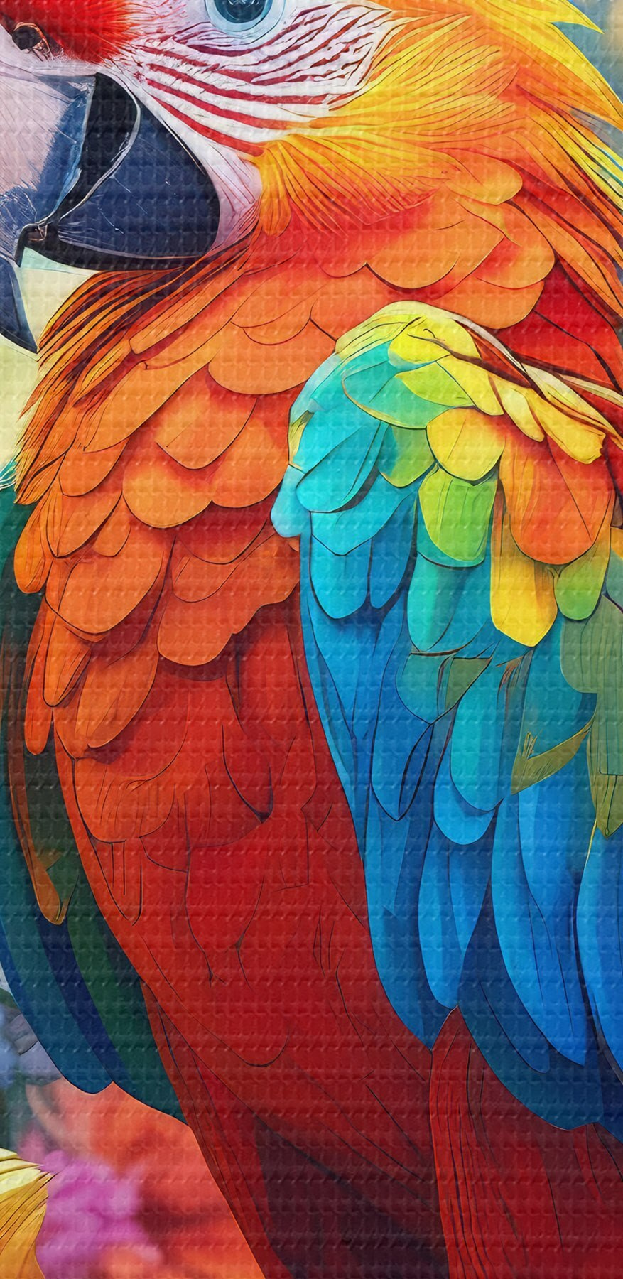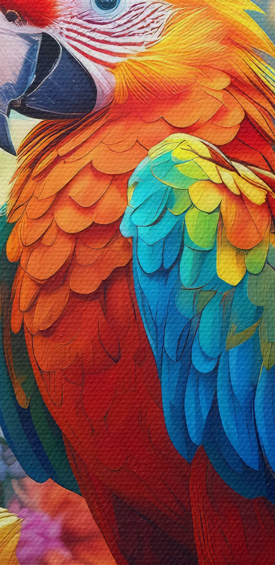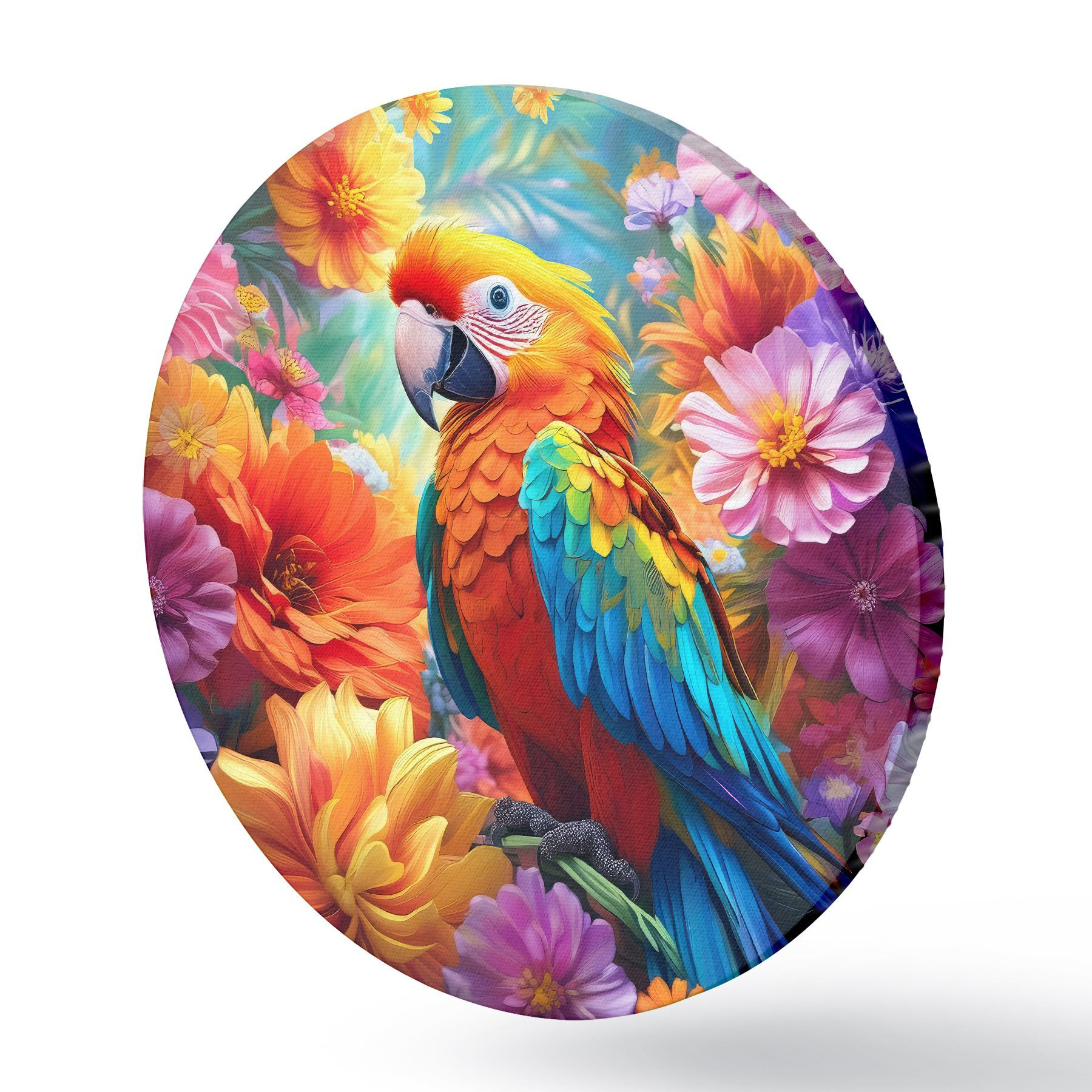 Nuotrauka ryški papūga ir spalvingos gėlės Nr r38611