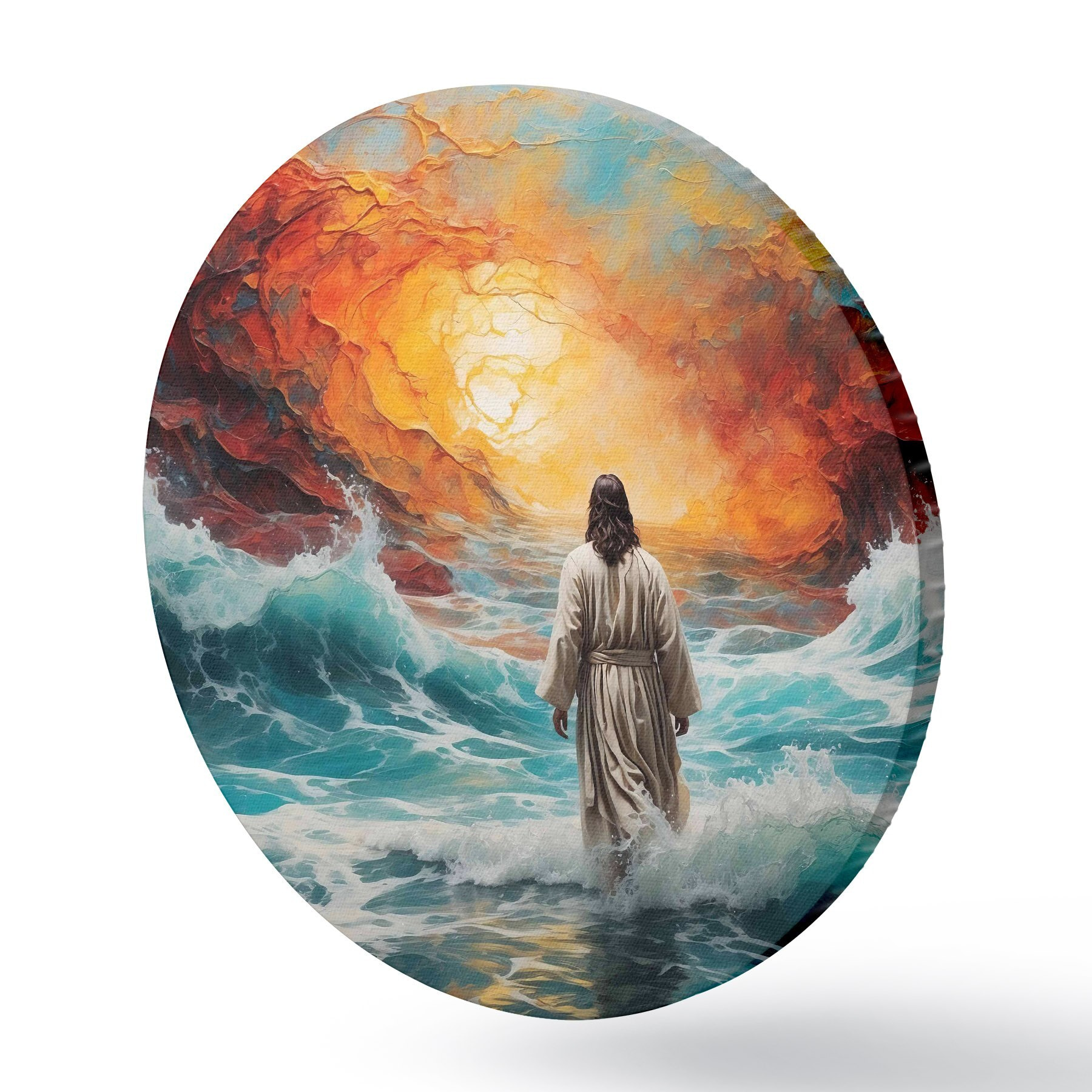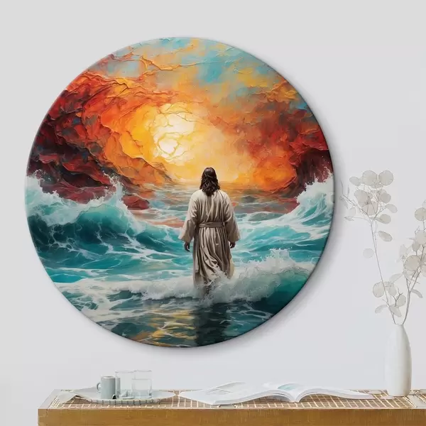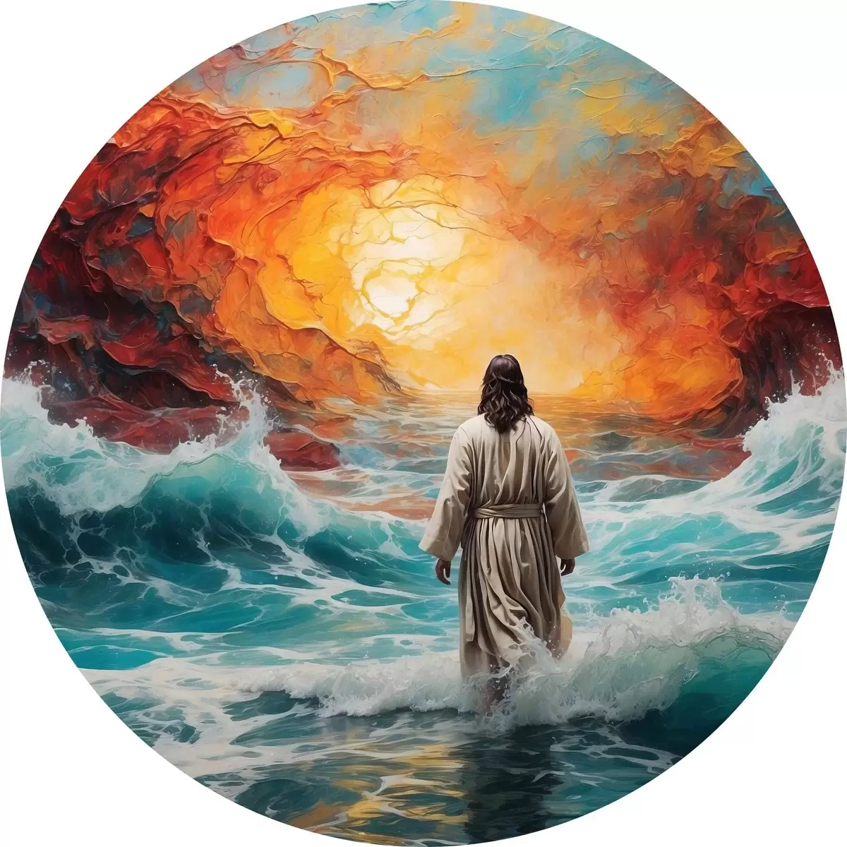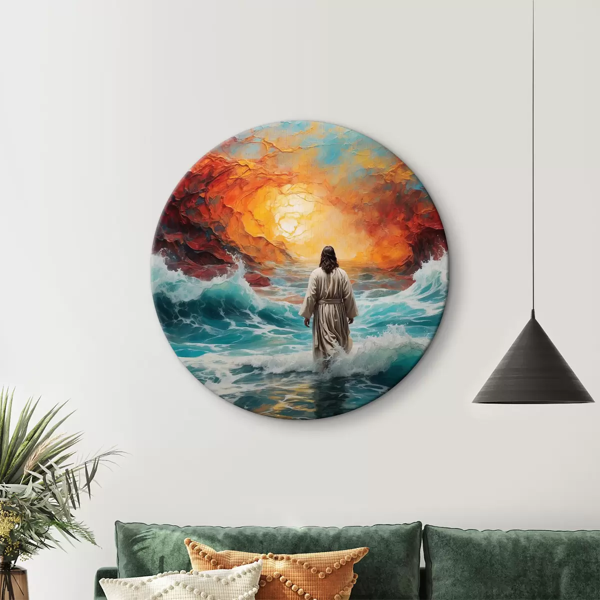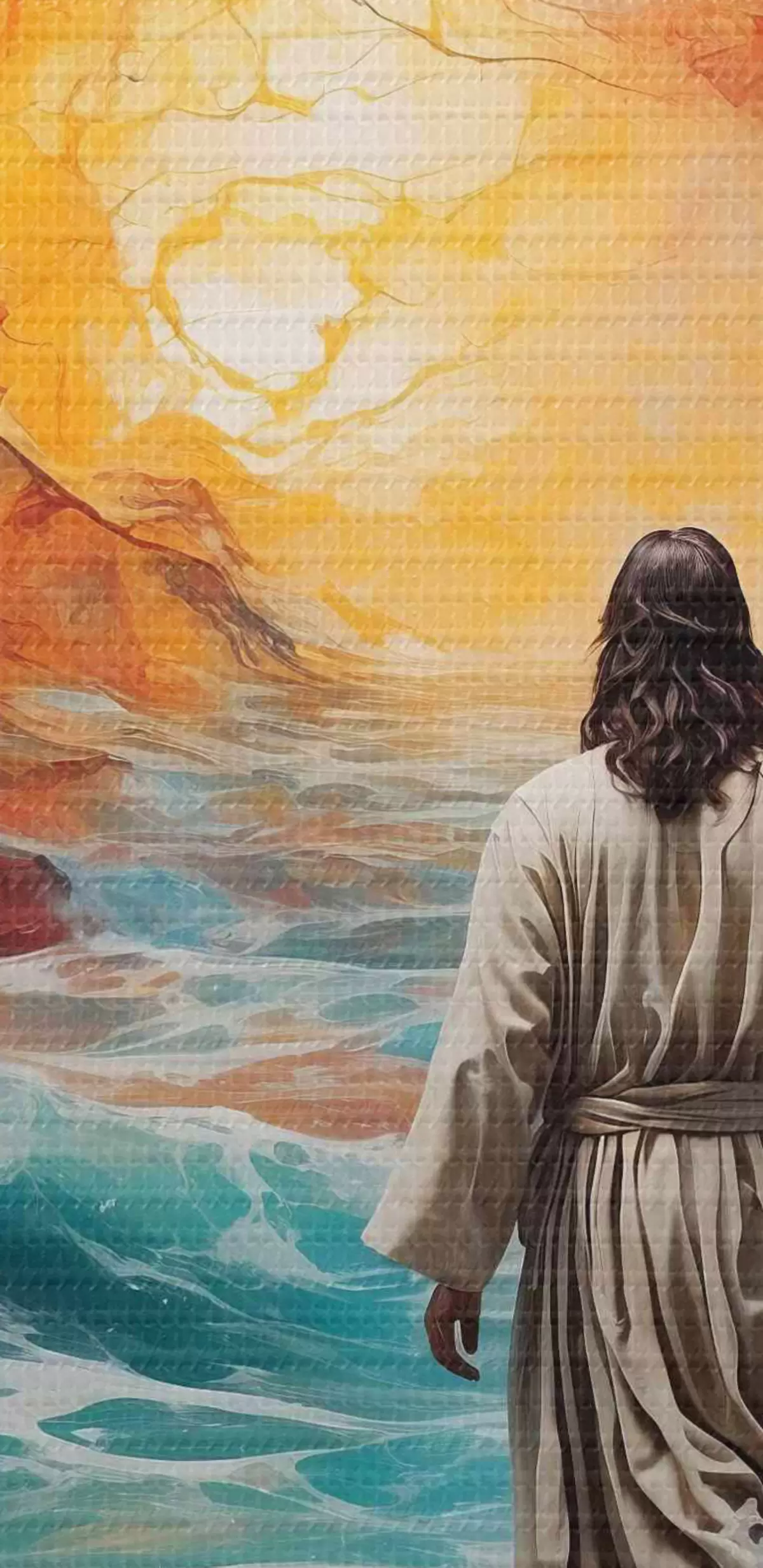 Nuotrauka Vyras vaikšto tarp ugninio dangaus ir jūros Nr r38612