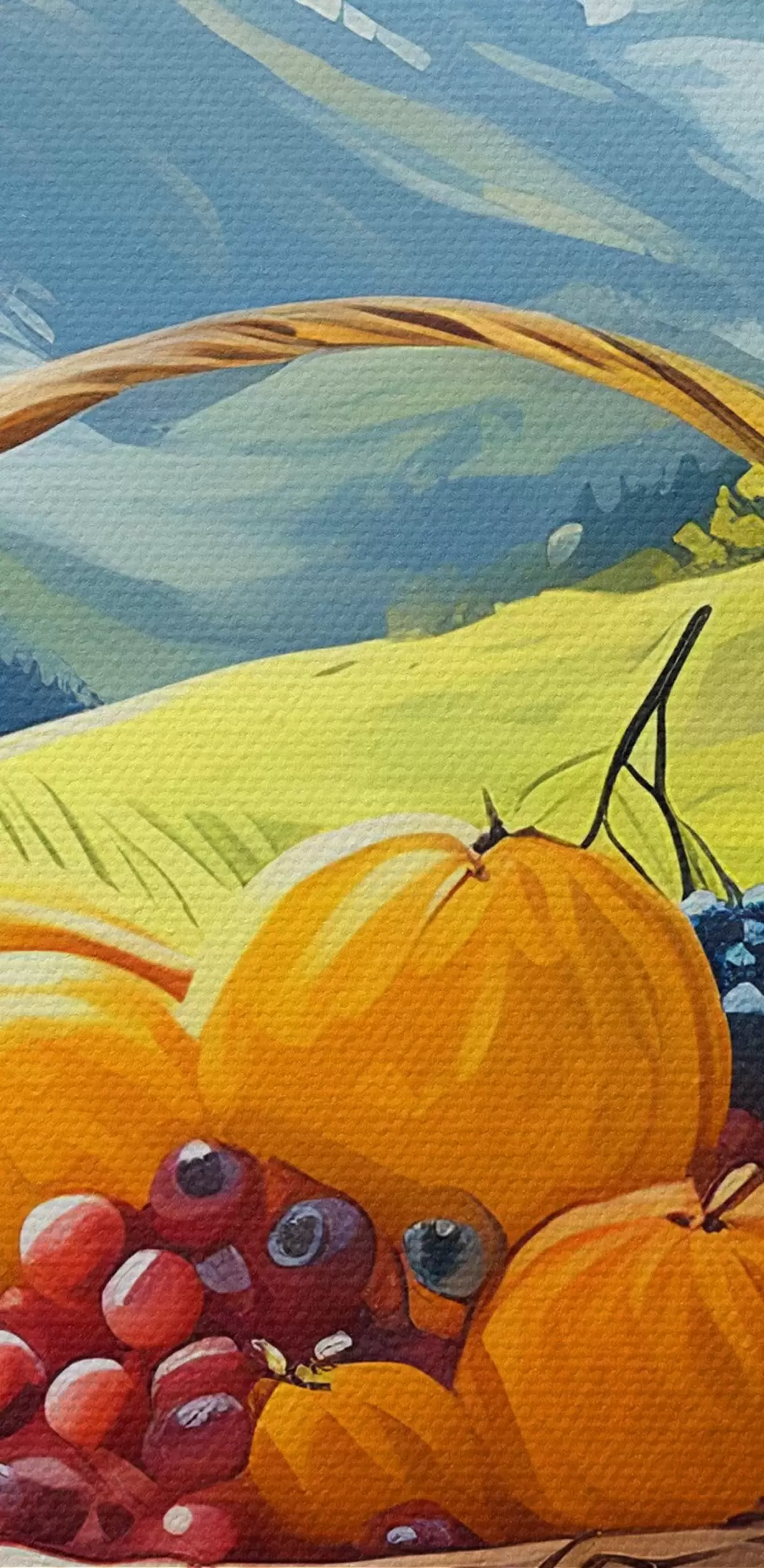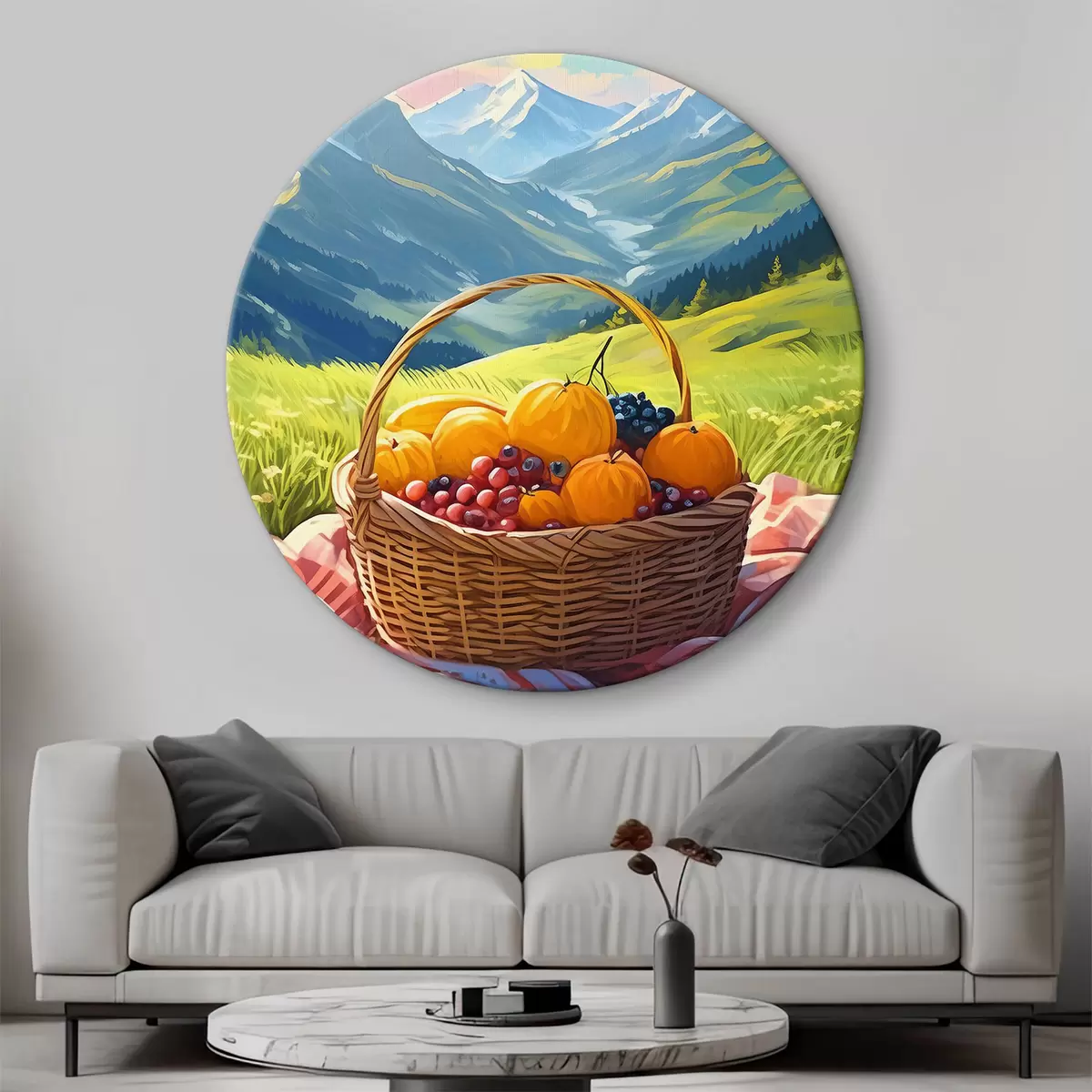 Nuotrauka vaisių pintinė pievoje kalnuose Nr r38654
