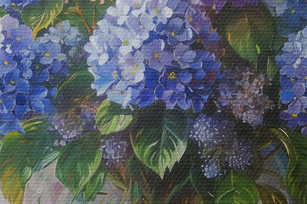 Nuotrauka Mėlynos hortenzijos ant stalo Nr r38709