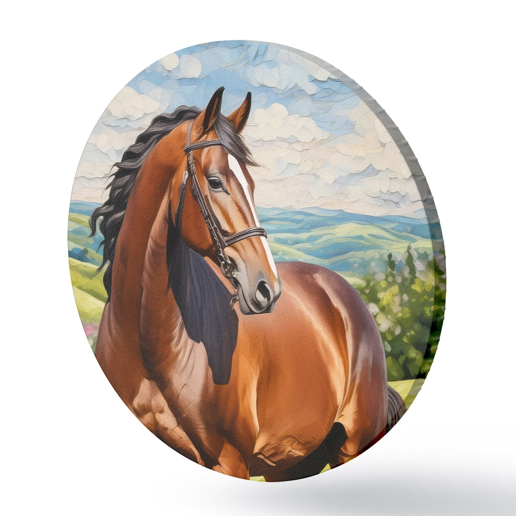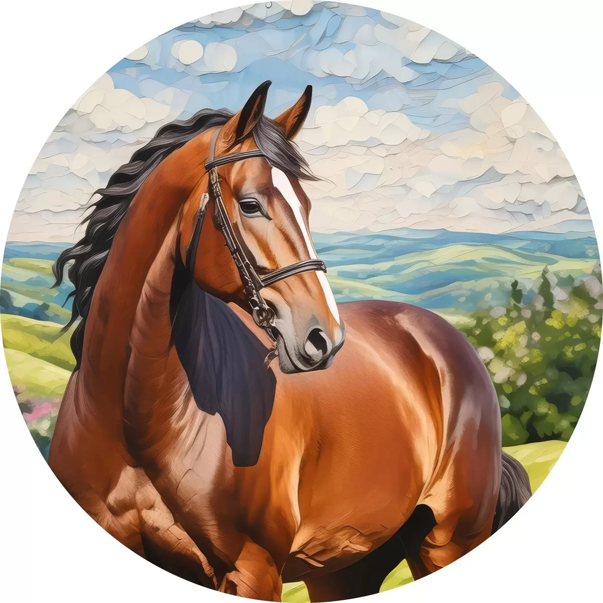 Nuotrauka Gražus arklys ant pievelės, mėlynas dangus Nr r38727