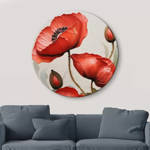 Apvalūs paveikslai Gražios raudonos aguonos su aliejiniais dažais r38734
