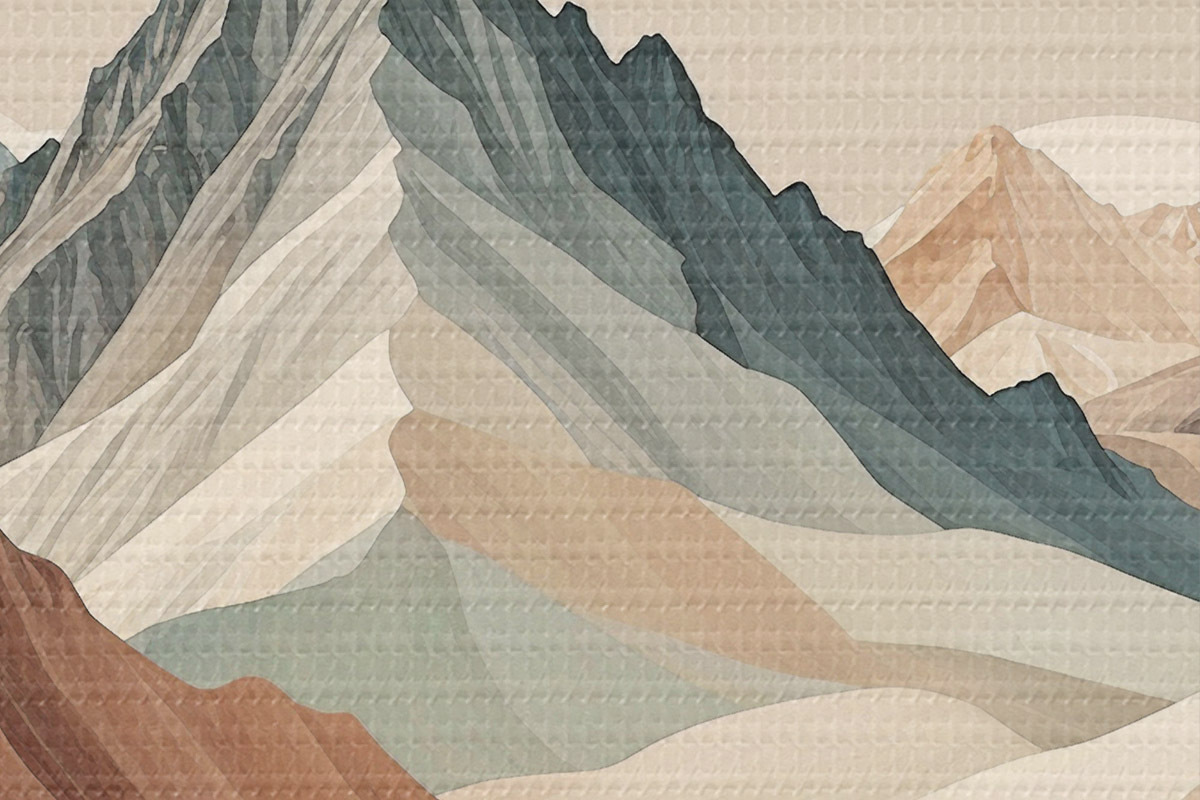 Nuotrauka Minimalizmo kalnų peizažas su uolėtomis viršūnėmis ir smėlio spalvos kalvomis Nr r38770
