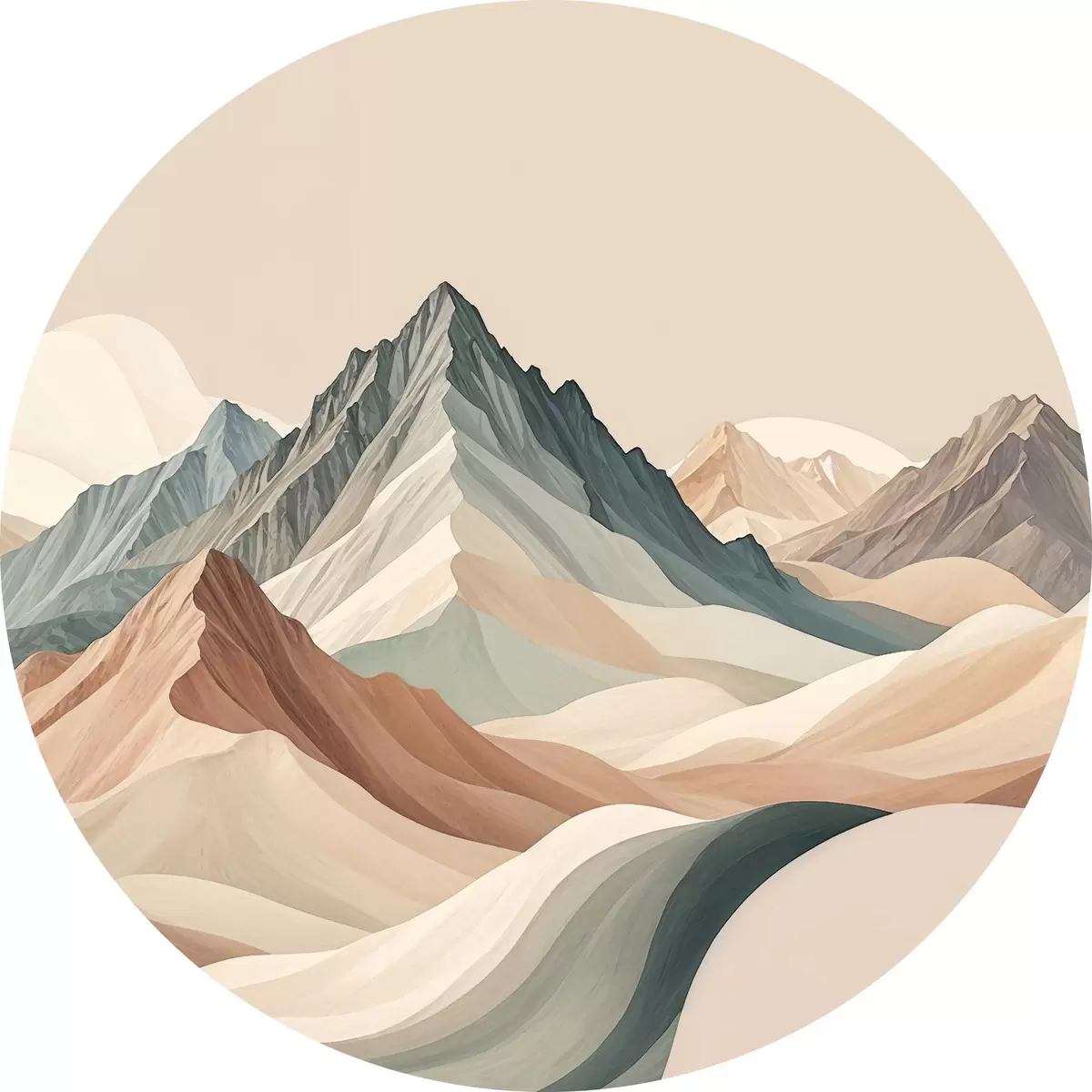 Nuotrauka Minimalizmo kalnų peizažas su uolėtomis viršūnėmis ir smėlio spalvos kalvomis Nr r38770