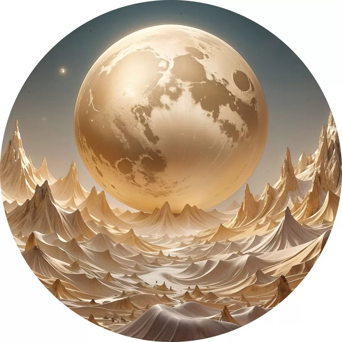 Nuotrauka Šviečianti mėnulio pilnatis virš siurrealistinio kalnų kraštovaizdžio su viršūnėmis Nr r38775