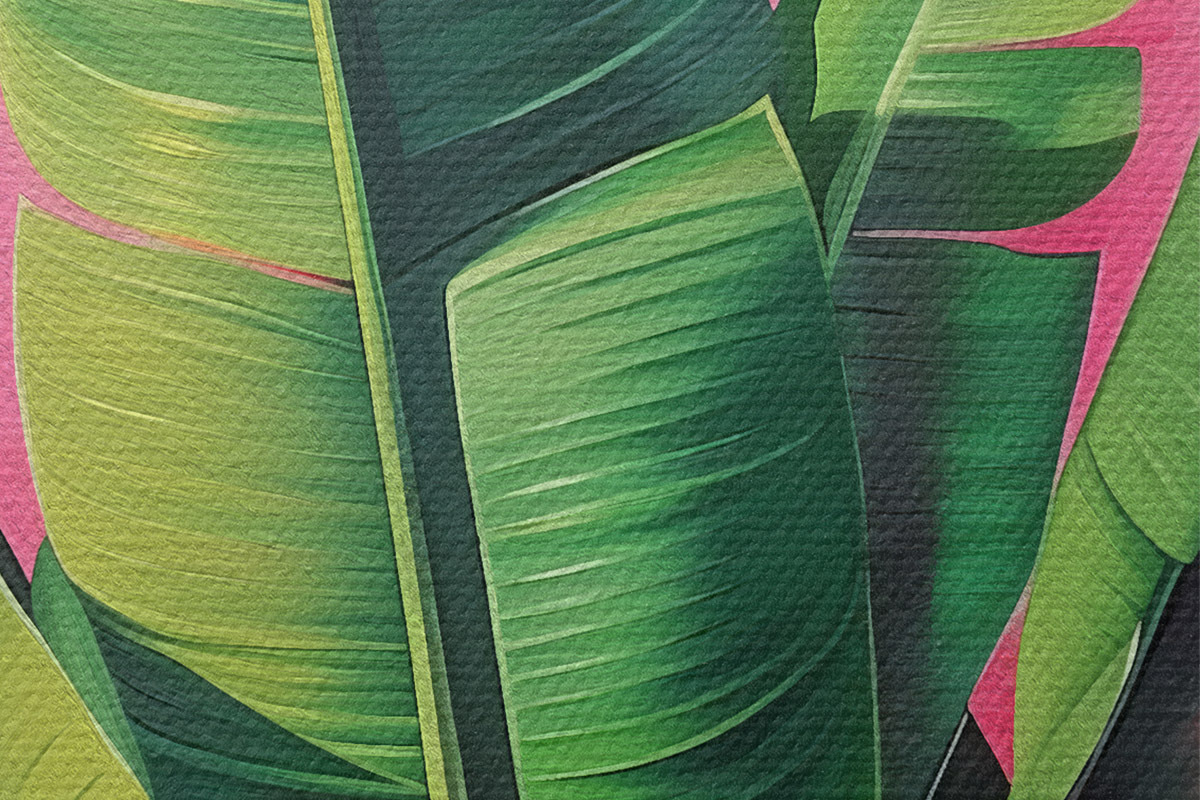 Nuotrauka Tropiniai lapai rožiniame fone Nr r38779
