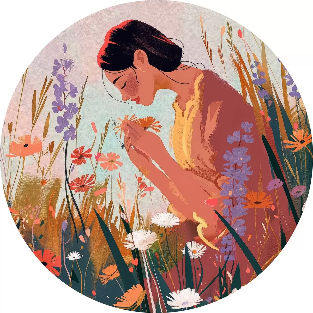 Nuotrauka Mergina lauke su gėlėmis Nr r38801