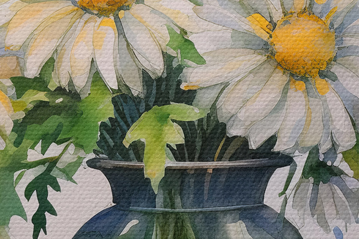 Nuotrauka Puokštė didelių ramunėlių vazoje, nudažyta akvarele Nr r38805
