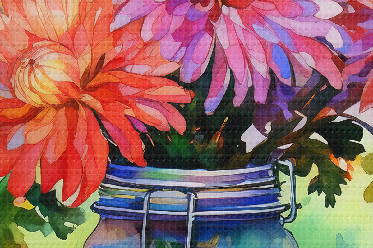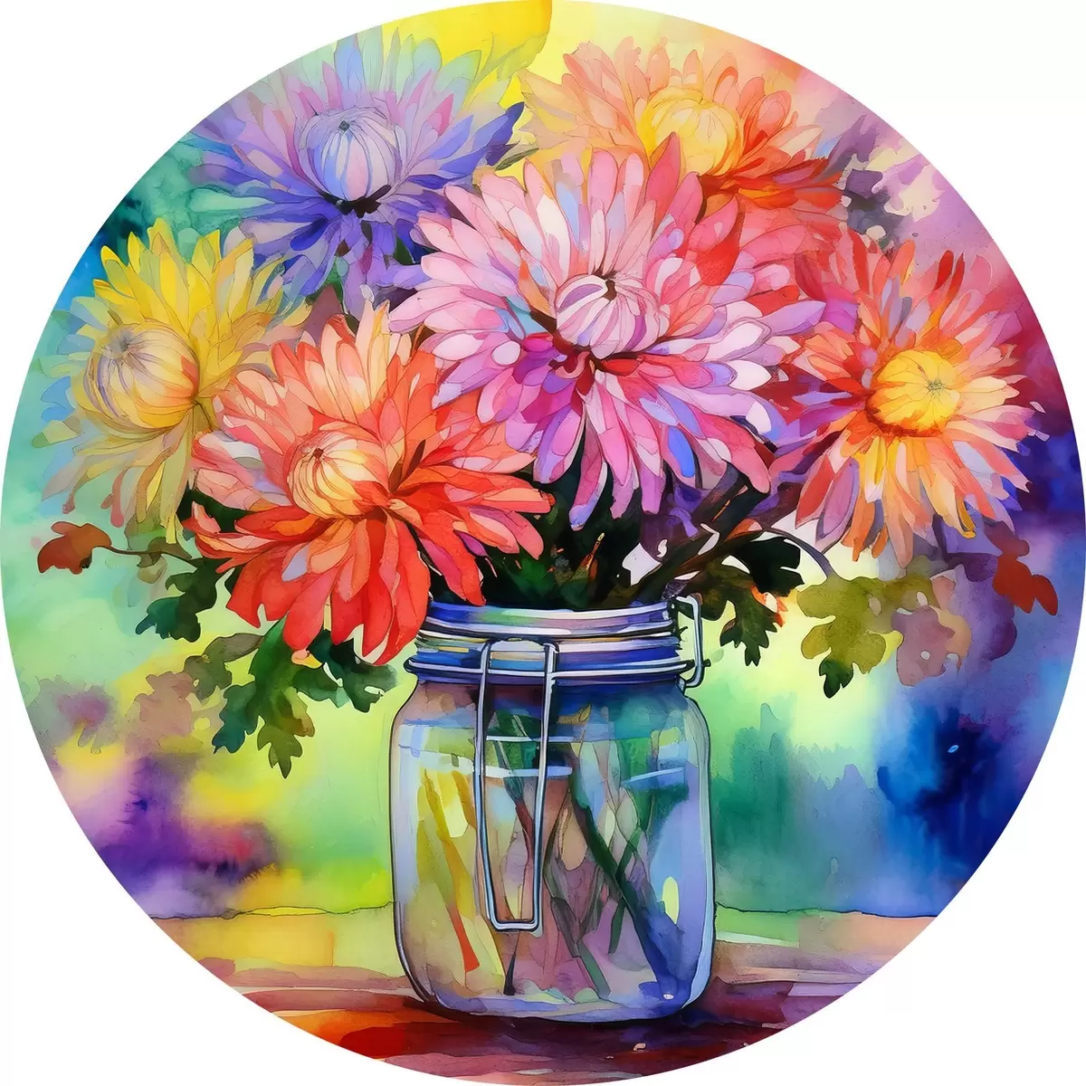 Nuotrauka Ryškių gėlių puokštė stiklainyje Nr r38813