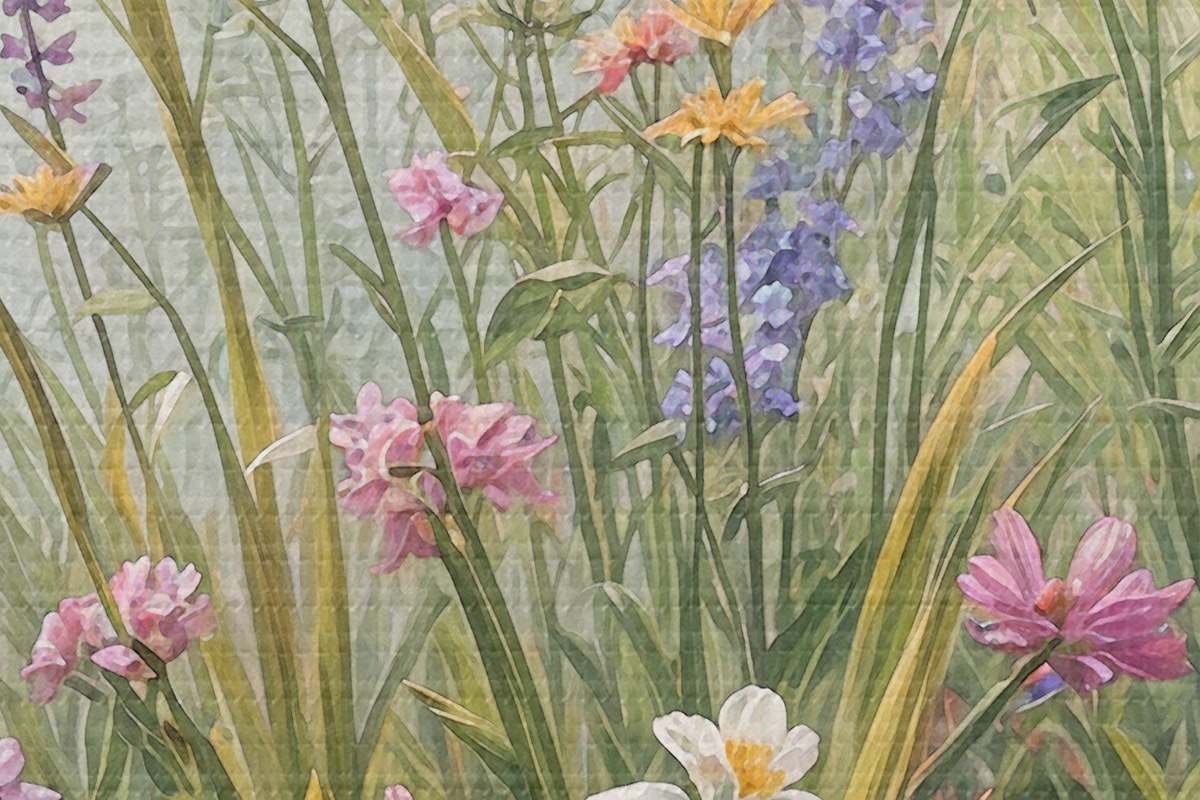 Nuotrauka Laukinės gėlės ir aukštos žolės. Bendroje scenoje vaizduojamas gyvas, natūralus kraštovaizdis Nr r38829