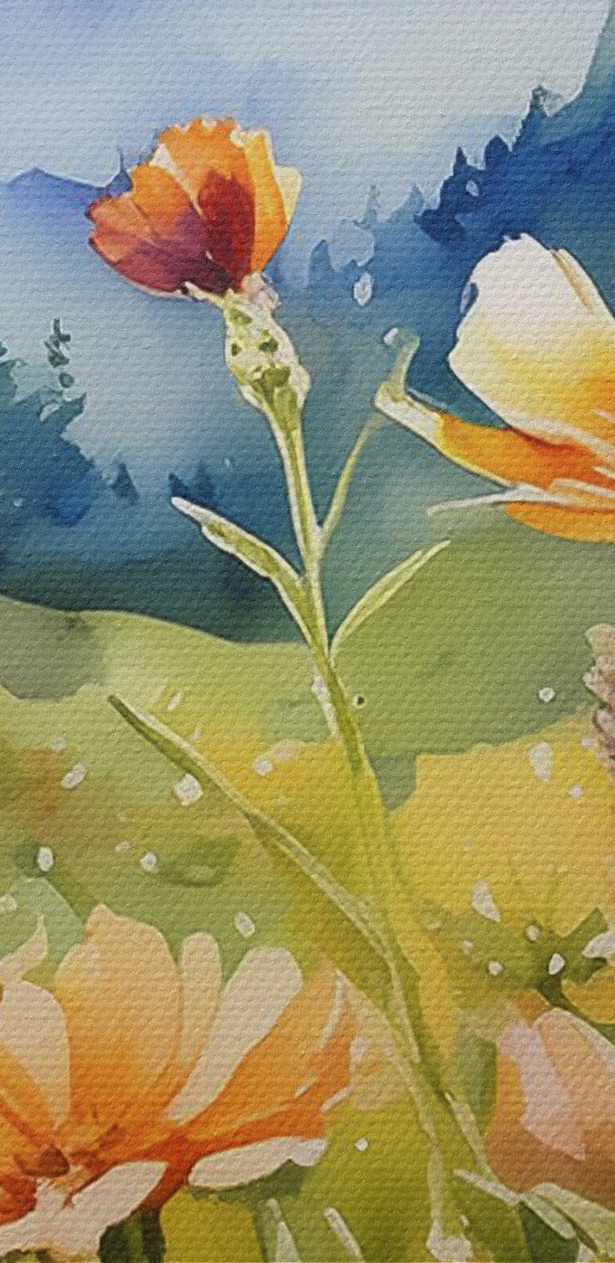 Nuotrauka Kraštovaizdis su gėlėmis ir kalnais Nr r38841