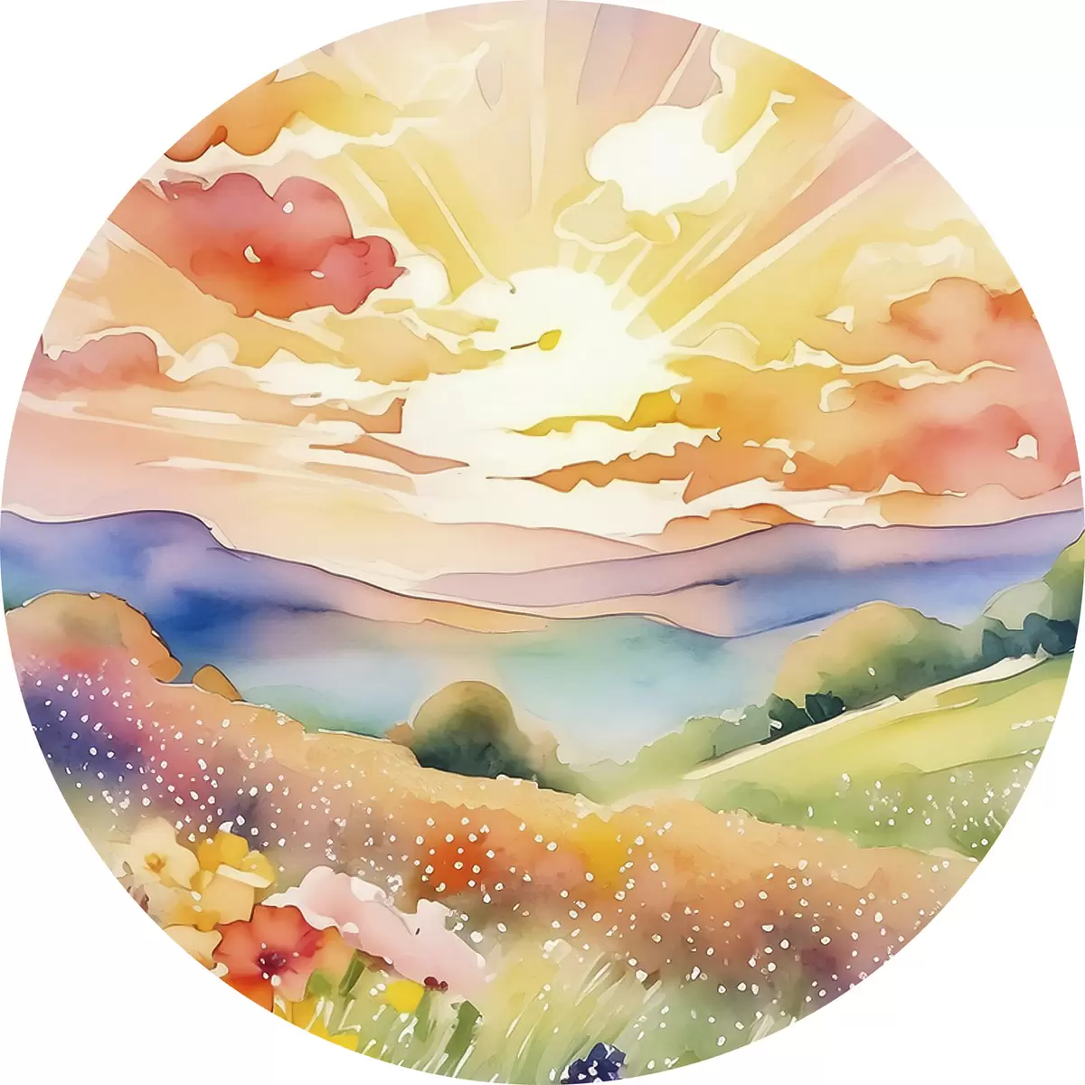 Nuotrauka Saulėlydis vasaros lauke, gėlės, saulė, spalvingas dangus, debesys, gamta Nr r38842