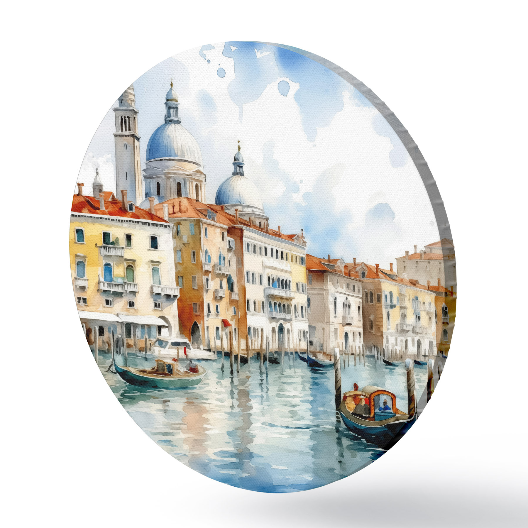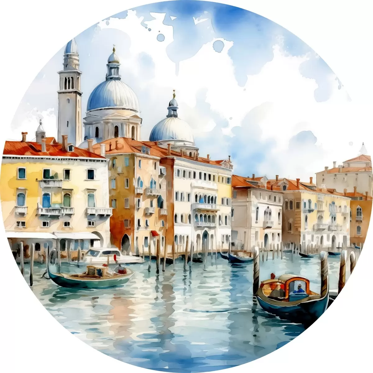 Apvalūs paveikslai Akvarelinis peizažas Venecija, įlanka, upė, architektūra, peizažas, valtys, gondola r38908