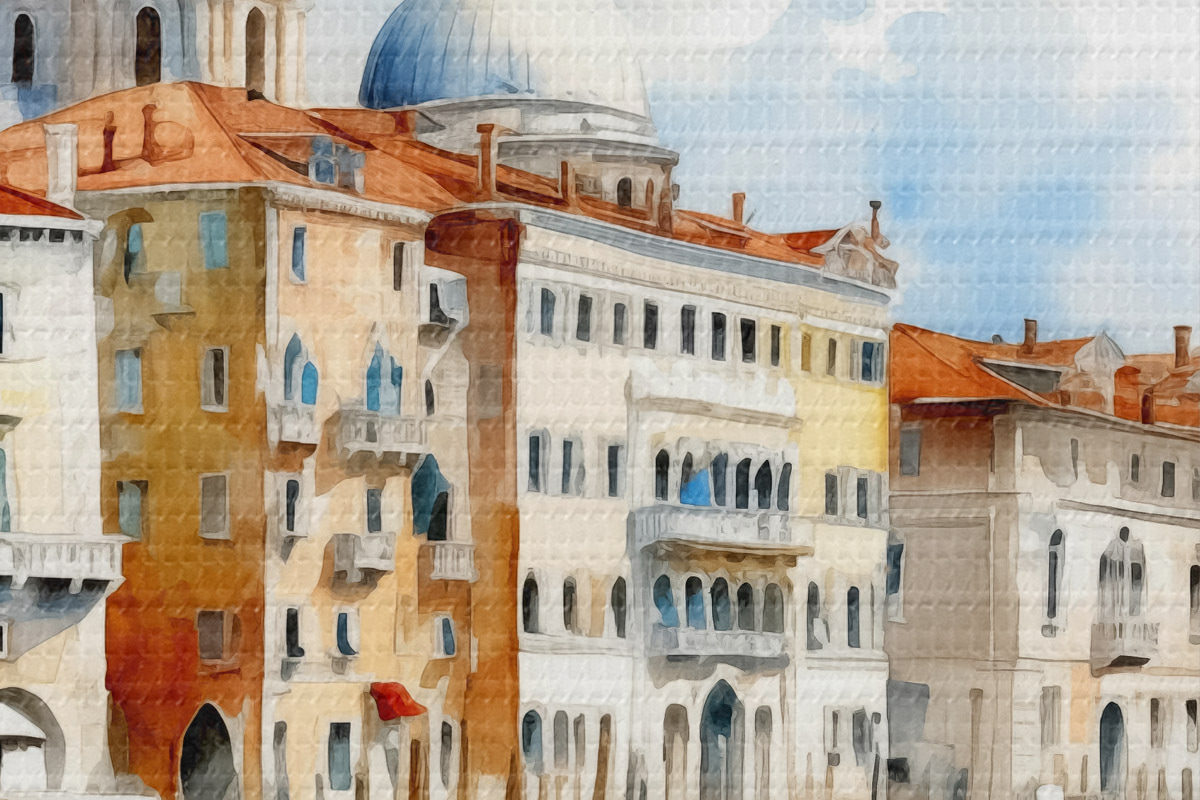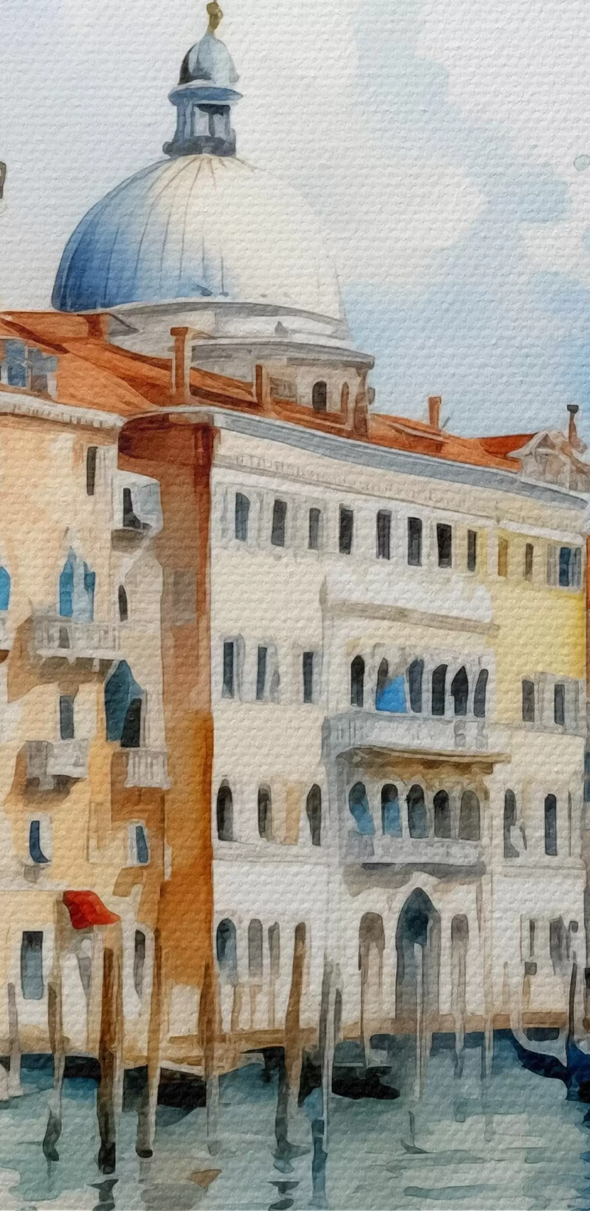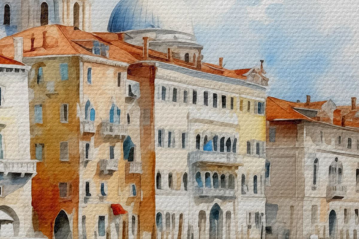 Nuotrauka Akvarelinis peizažas Venecija, įlanka, upė, architektūra, peizažas, valtys, gondola Nr r38908