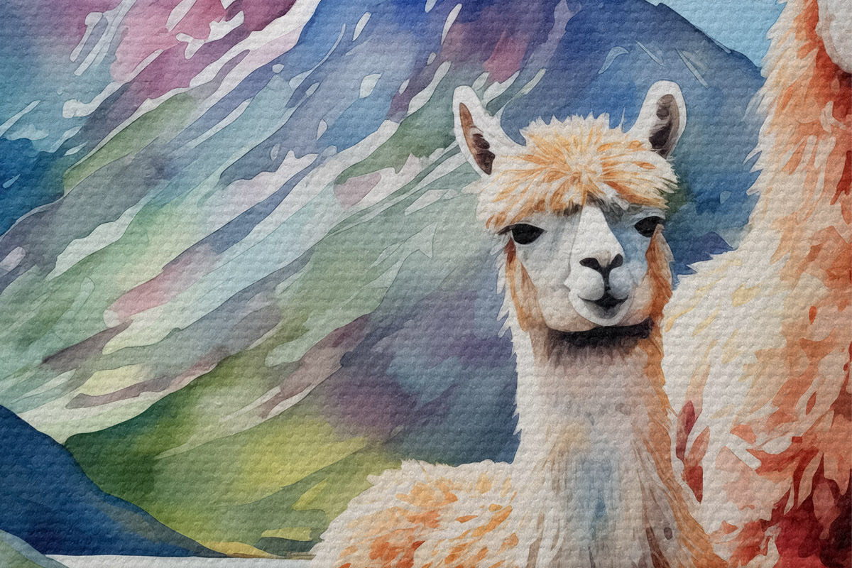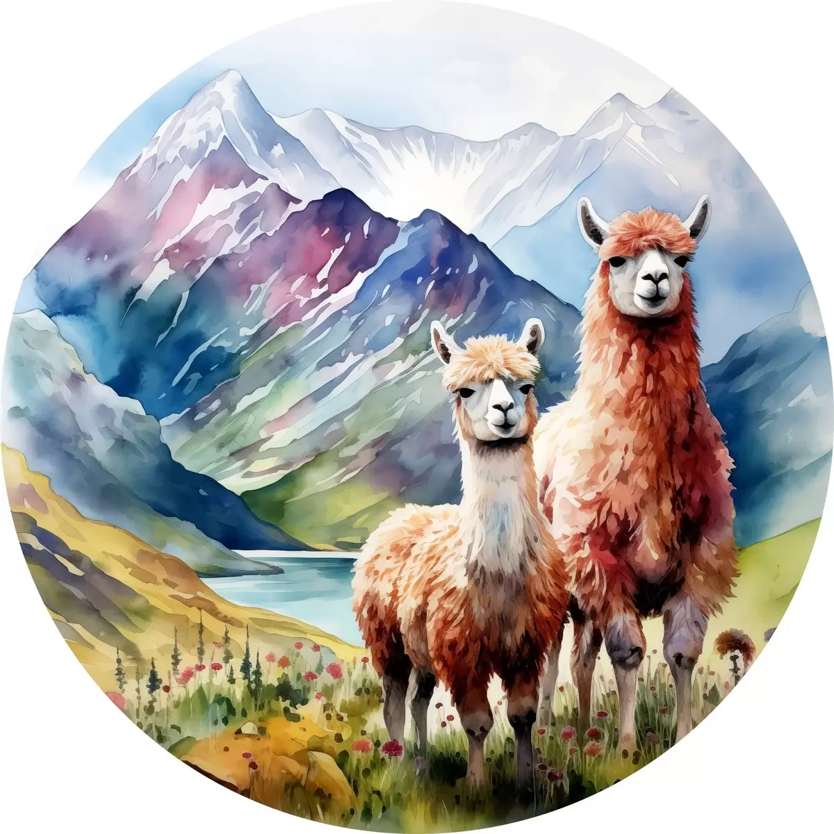 Nuotrauka Lamos mėgaujasi ramiu kalnų peizažu Nr r38934