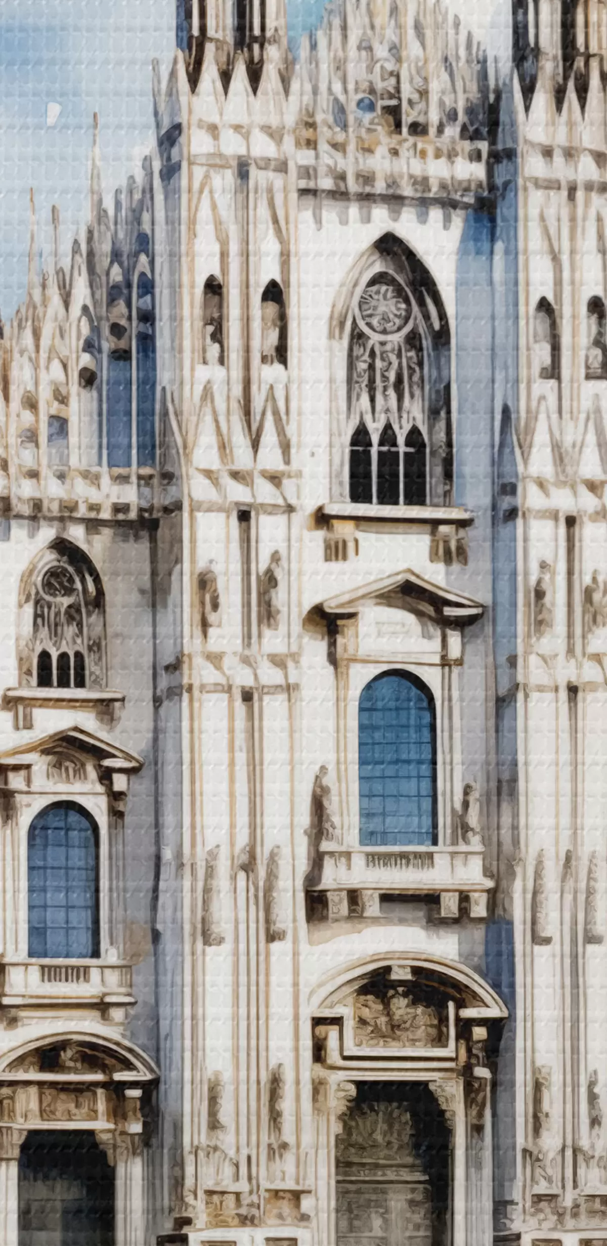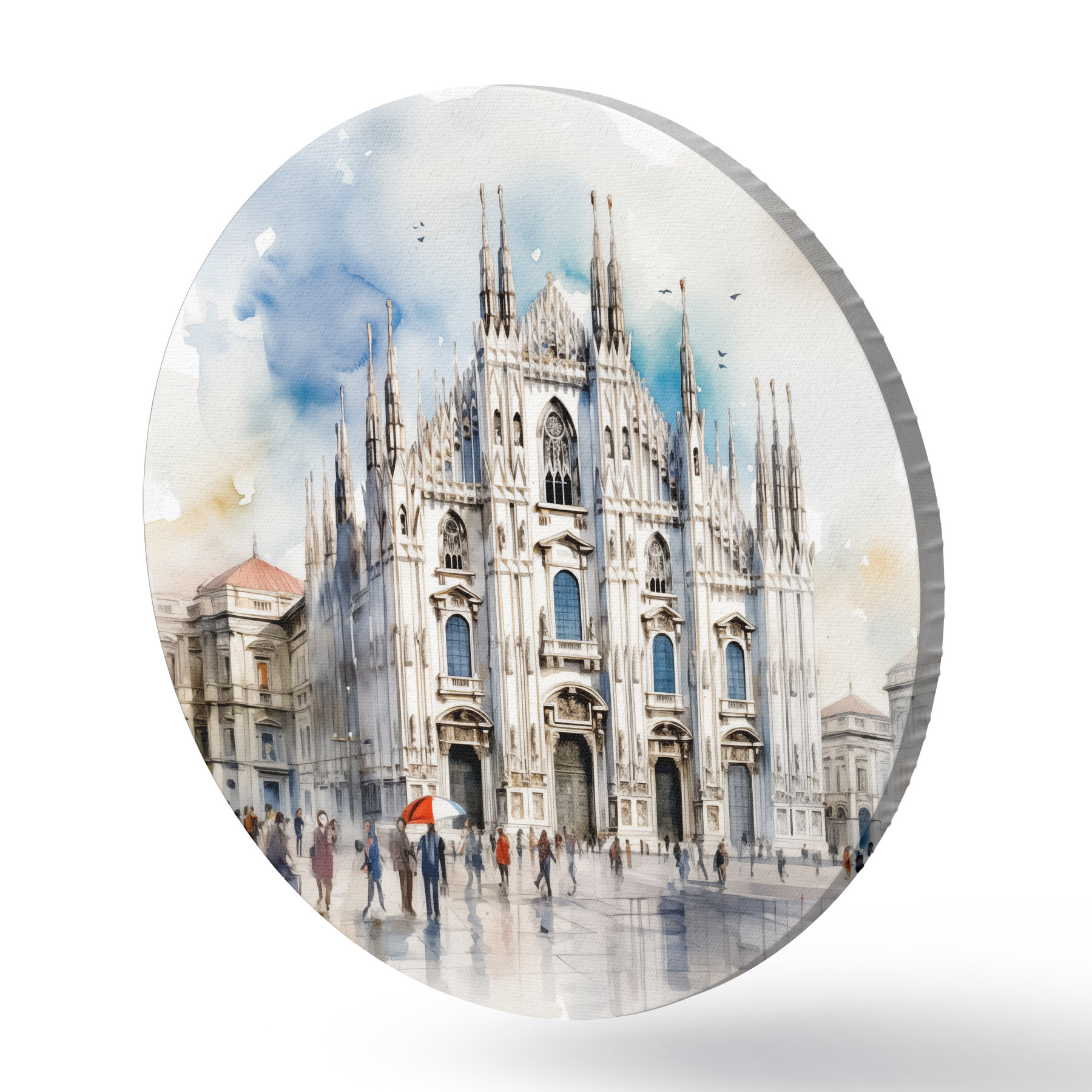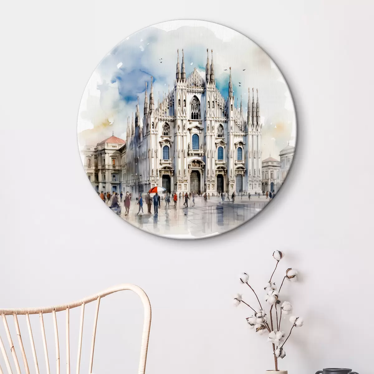 Nuotrauka Duomo katedra Milane, architektūra, miestas, lietus, akvarelė, mėlyna, pilka, vaikštantys žmonės Nr r38938