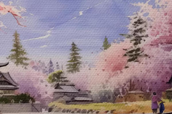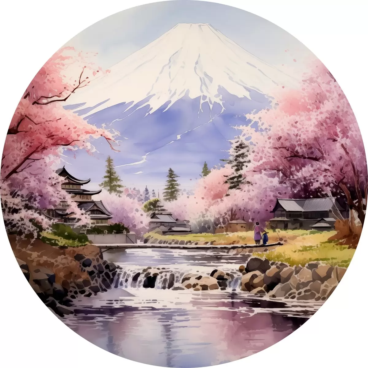 Nuotrauka Sakurų žiedai įrėmina ramų Fudži Nr r38948