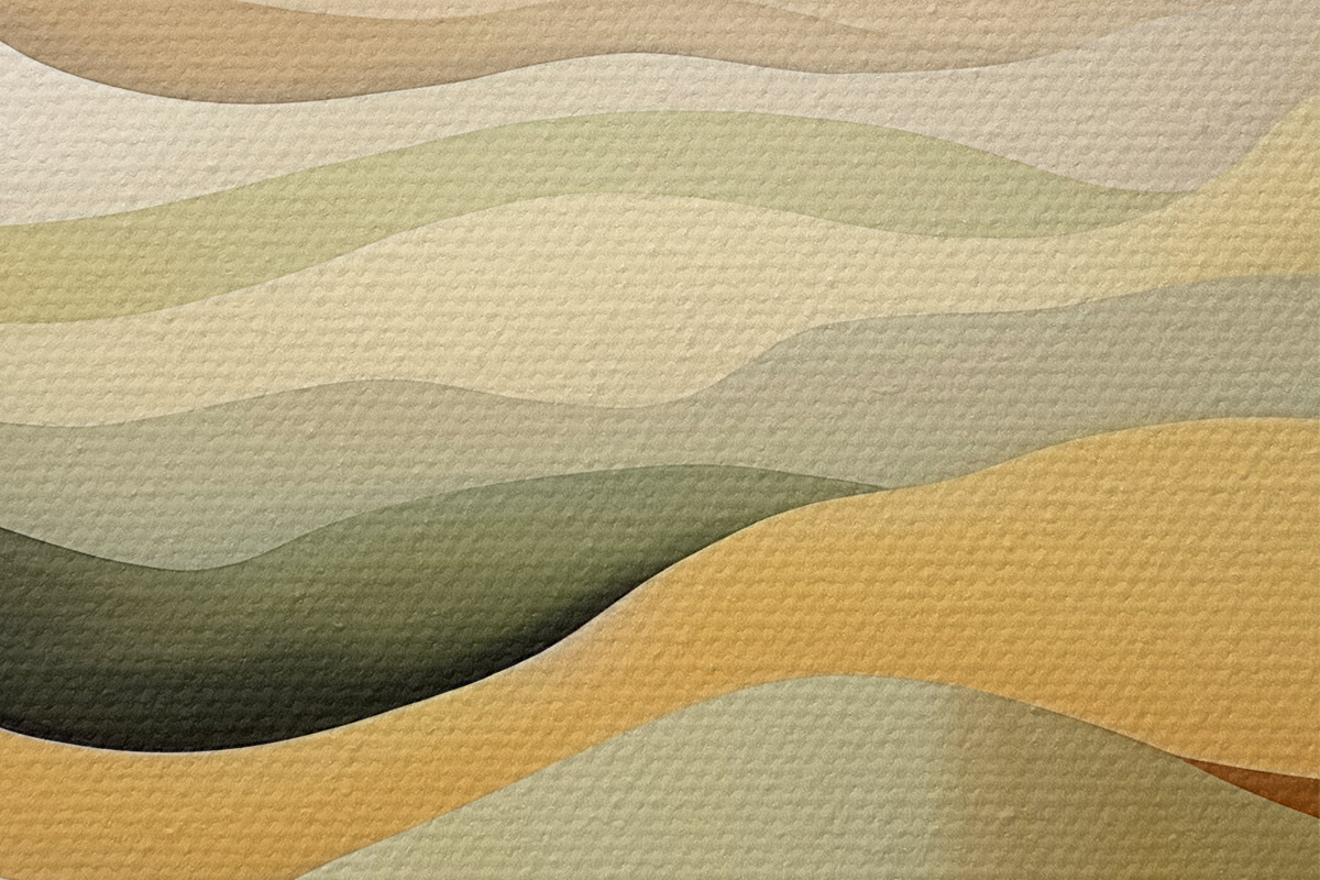Nuotrauka Kalvos, abstraktus peizažas, guašas, žalia, ochra, sepija, pilka Nr r38952