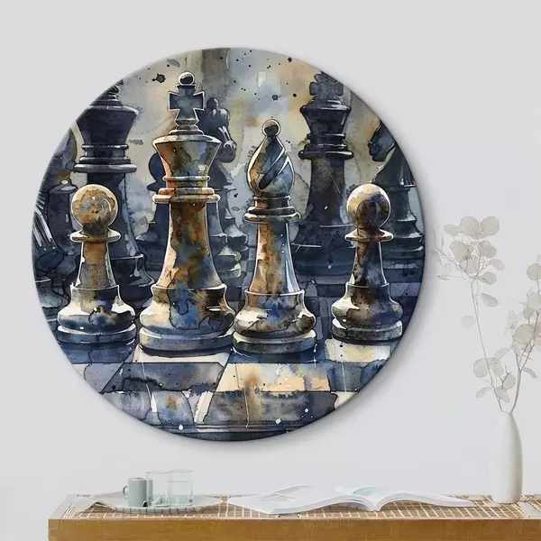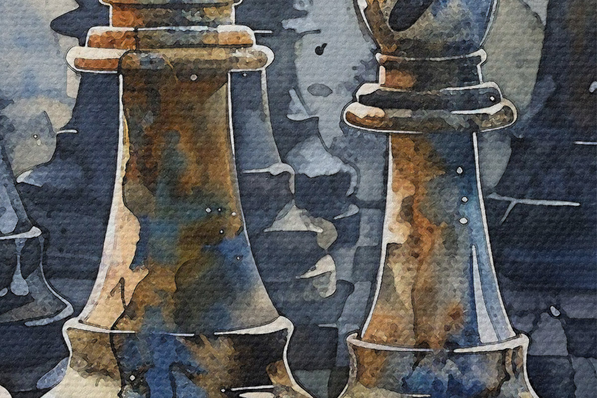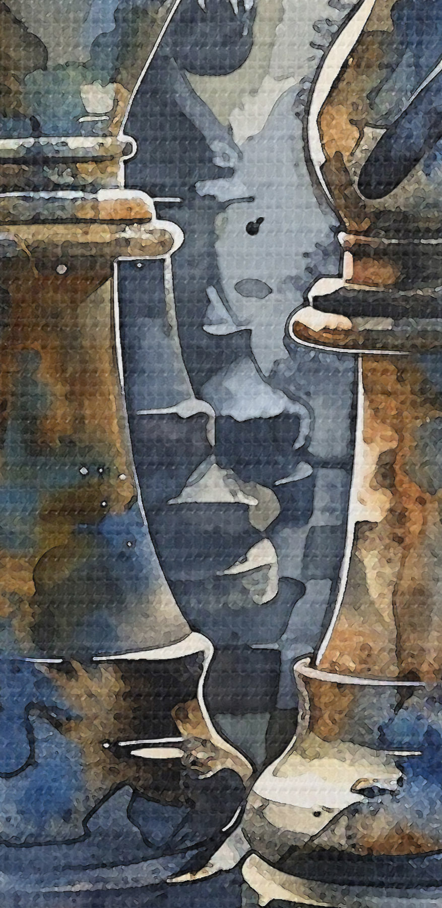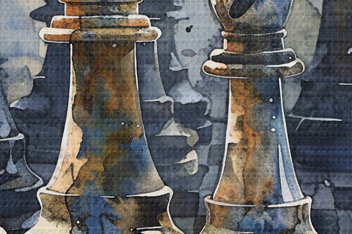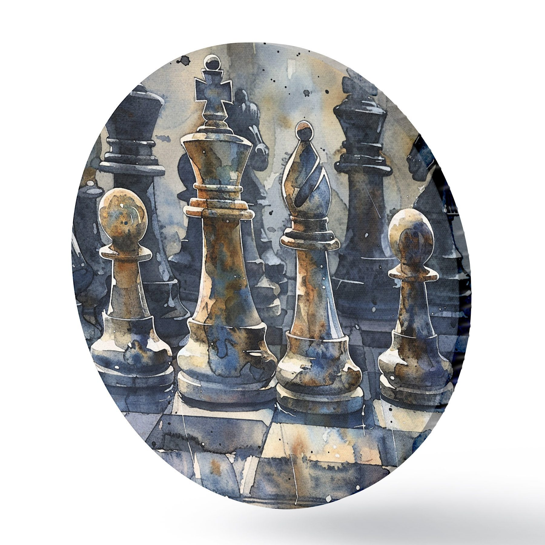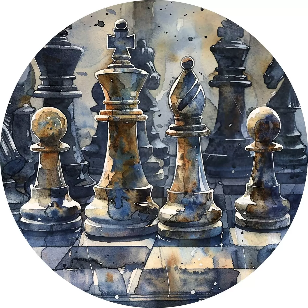 Nuotrauka Akvarele tapybos šachmatų iš metalo arba akmens vaizdas iš arti su detaliu dizainu ir faktūromis Nr r38960